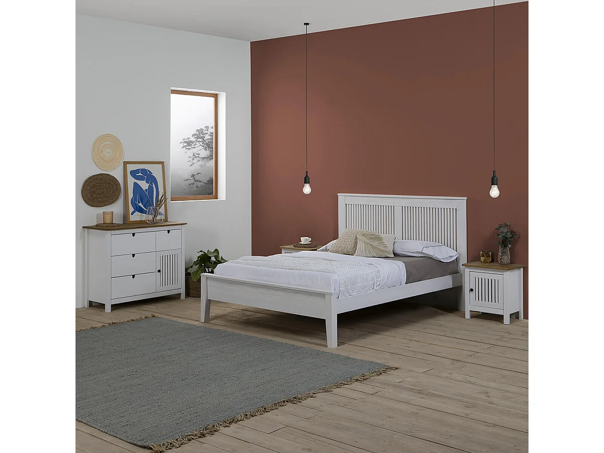 LAUPELL - Chevet Scandinave 3 Tiroirs Pin Massif Naturel et Blanc