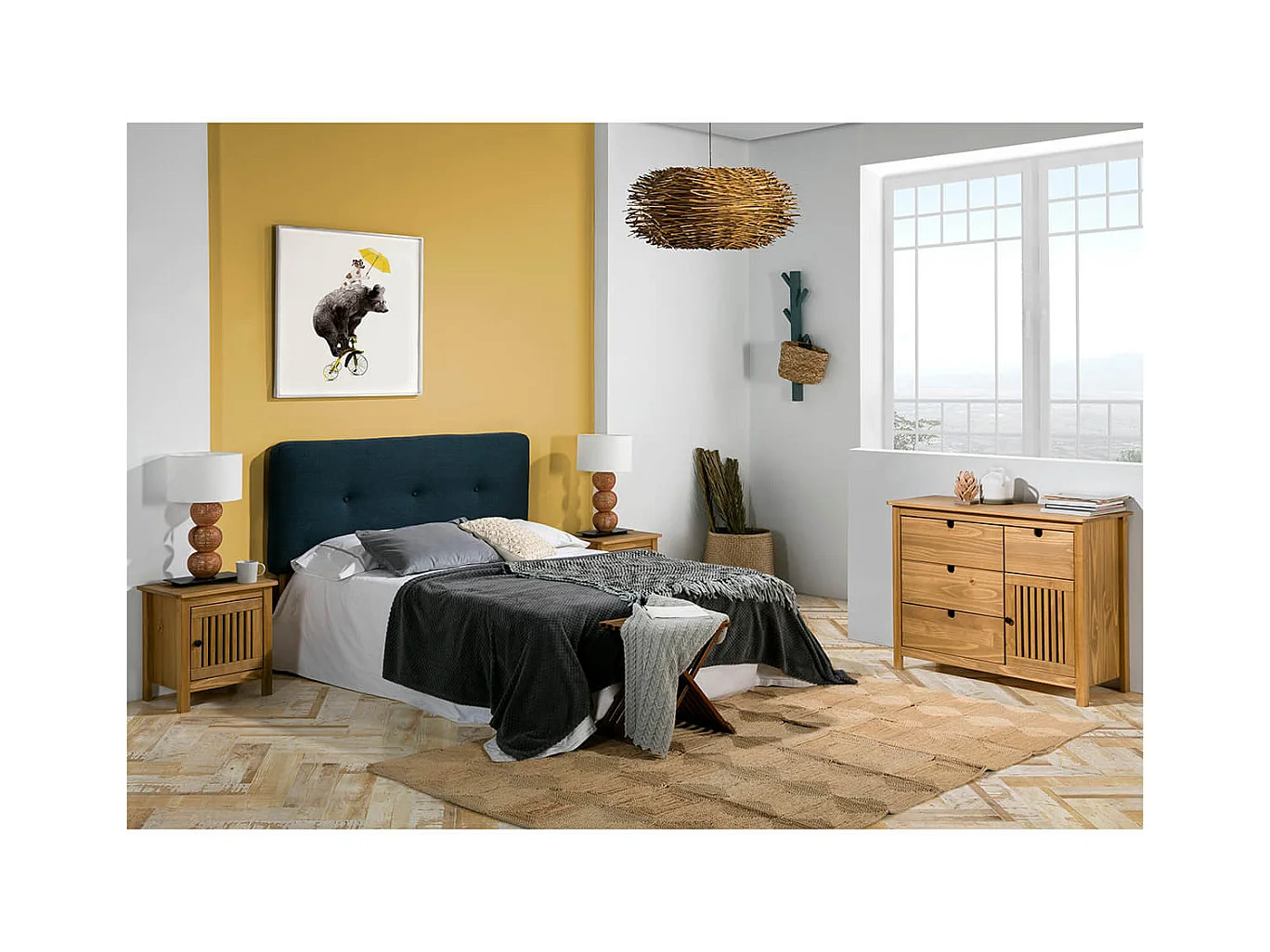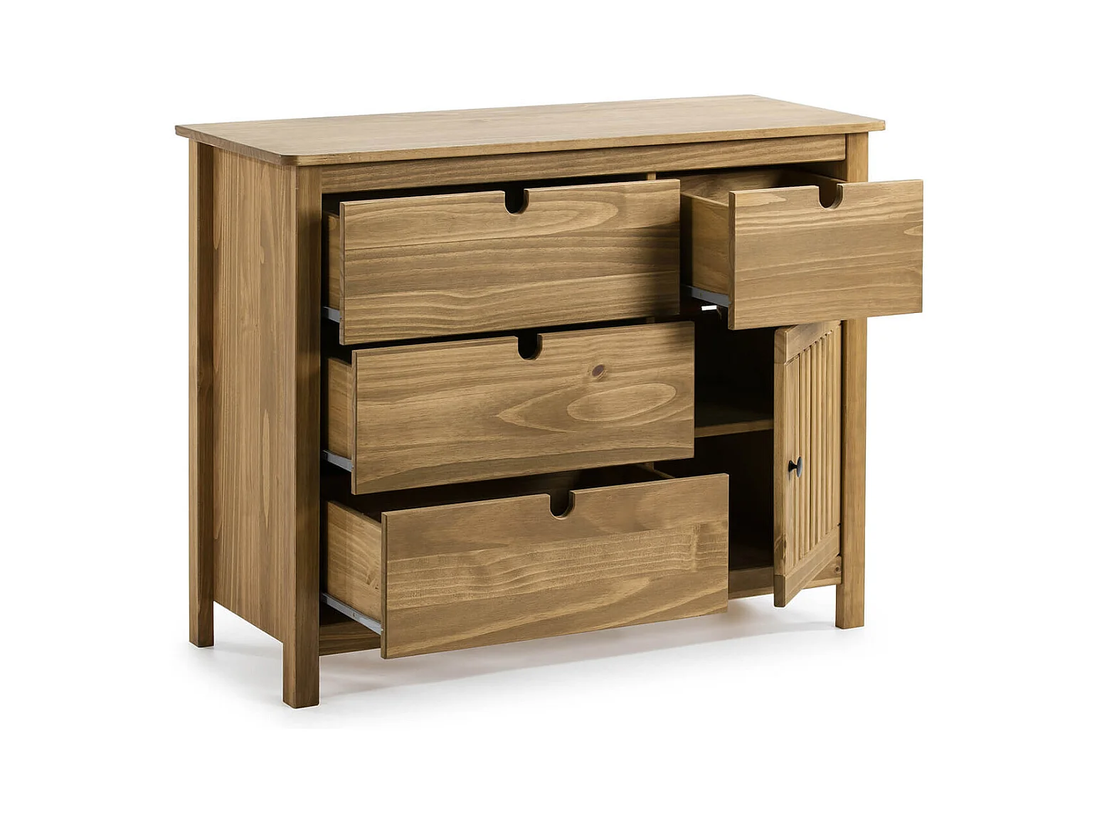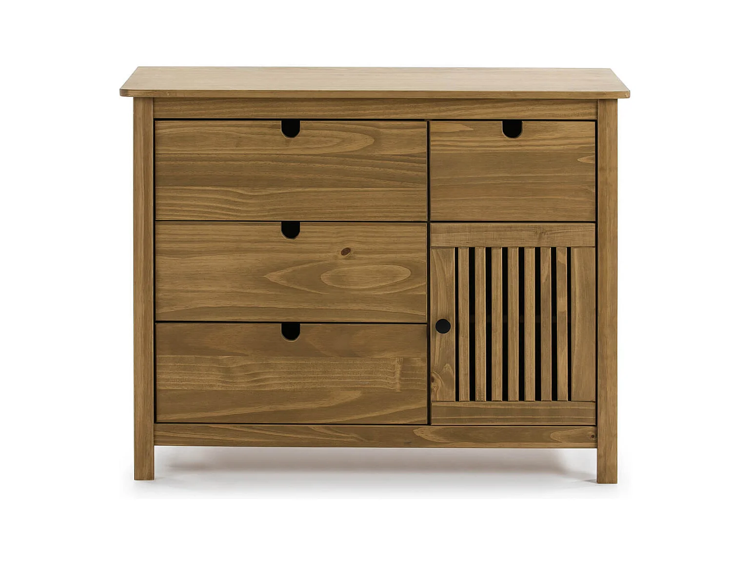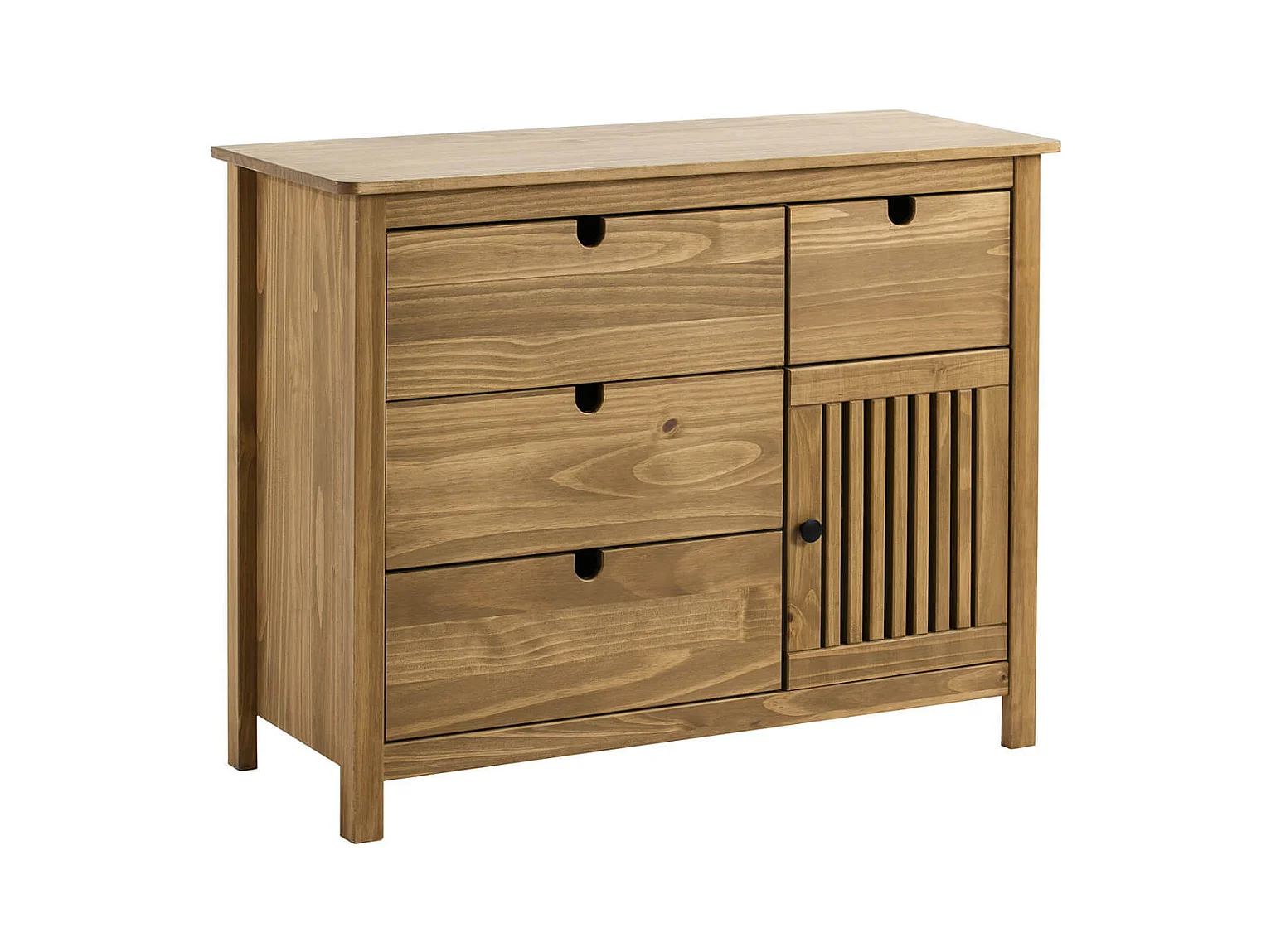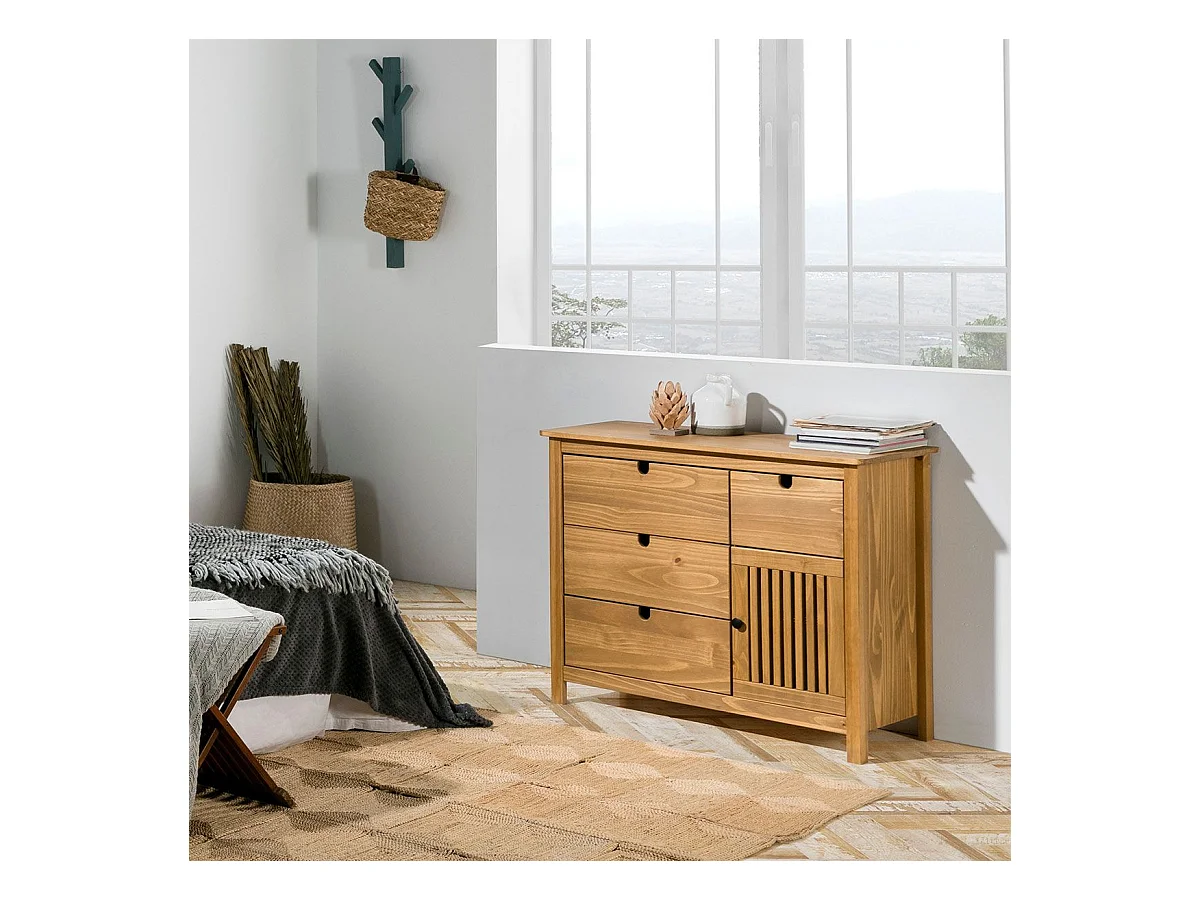 MALIA - Commode 4 Tiroirs 1 Porte Bois Ciré