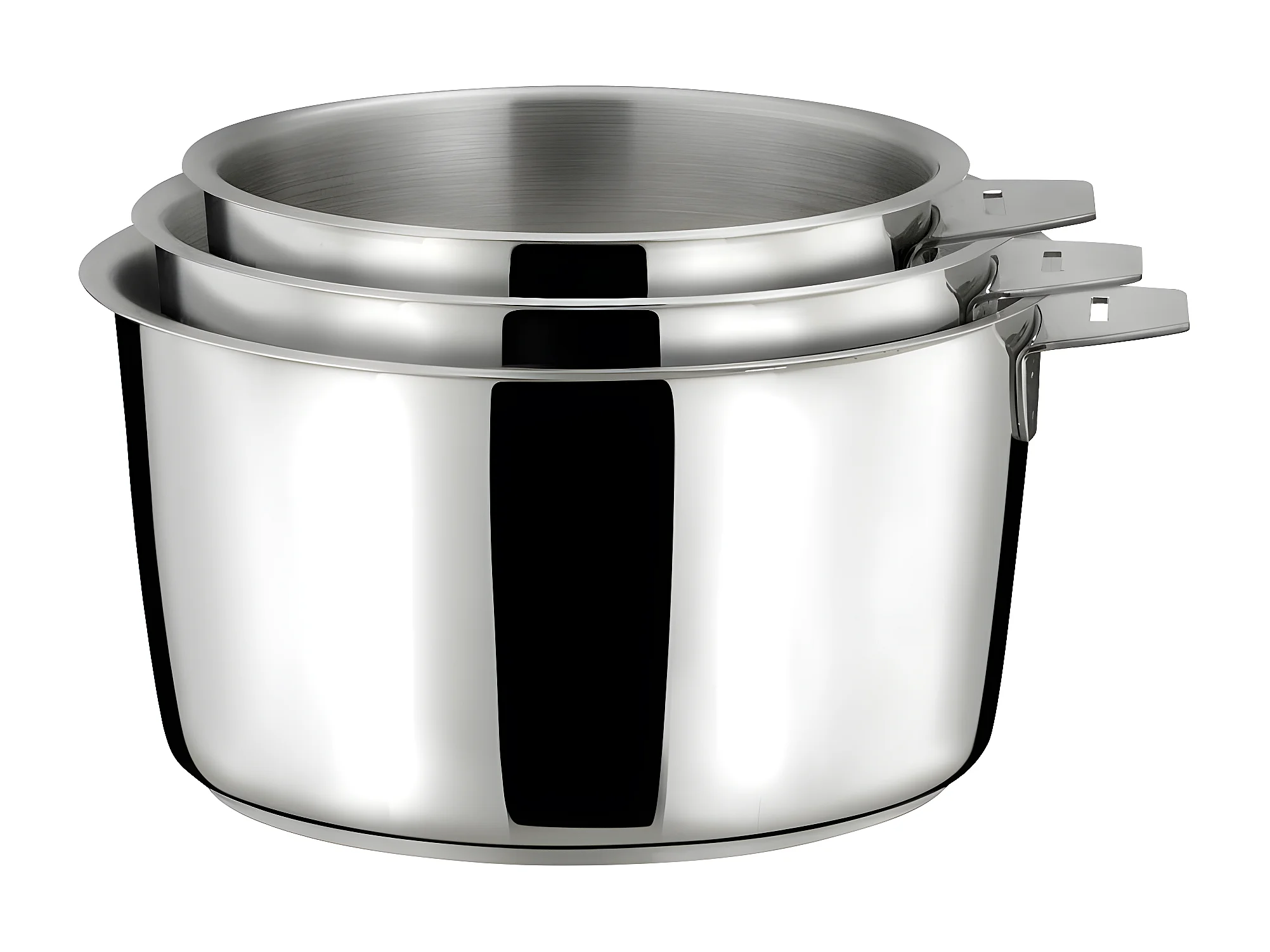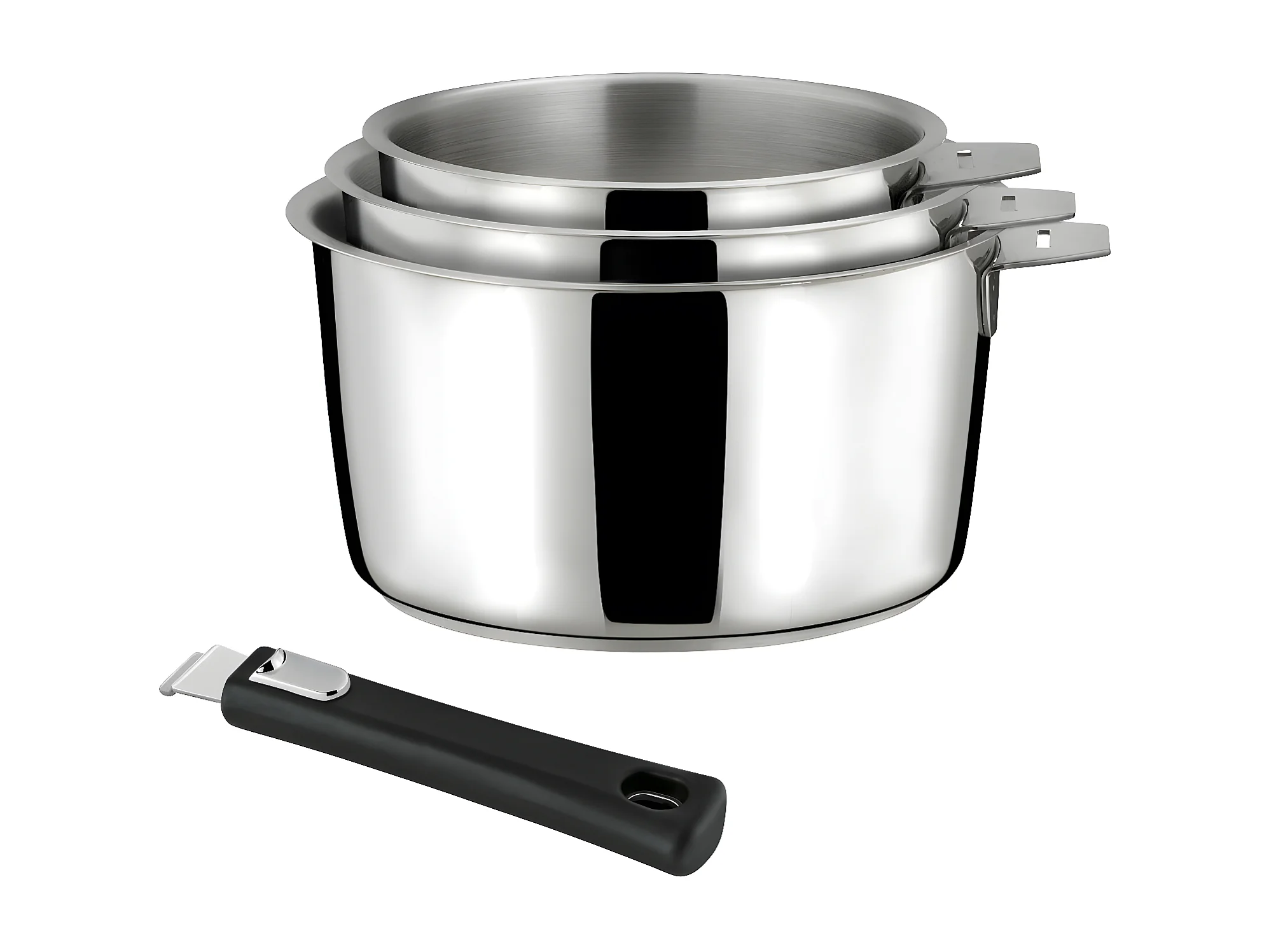 Malice - Série de 3 casseroles 16/18/20cm inox avec poignée noire