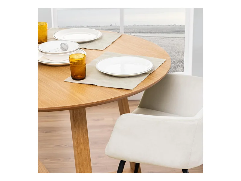 Malika Table à manger Ø120 cm, finition chêne.