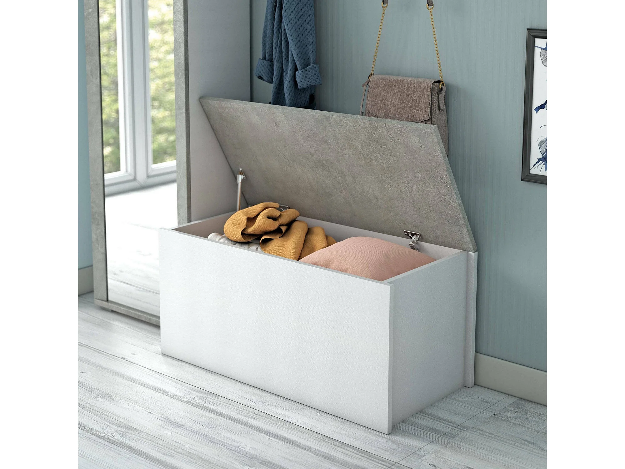 Malle Ditalen, Grande boîte de rangement polyvalente, Coffre moderne, 100% Made in Italy, 90x45h45 cm, Blanc et Ciment