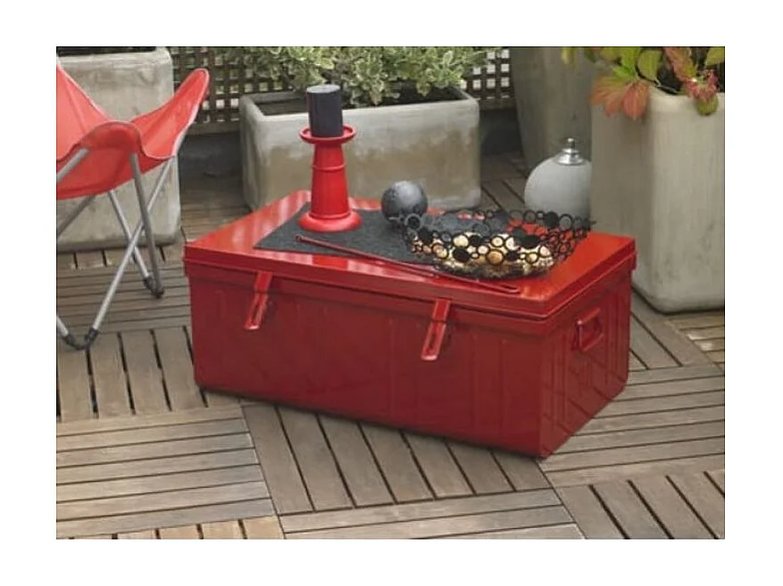 Malle de rangement en métal Habitat L80xH34xP47 - Capacité 95 litres-Rouge