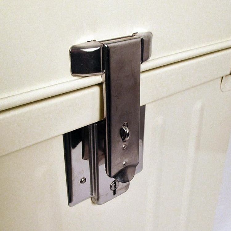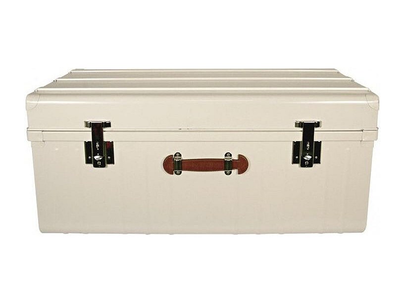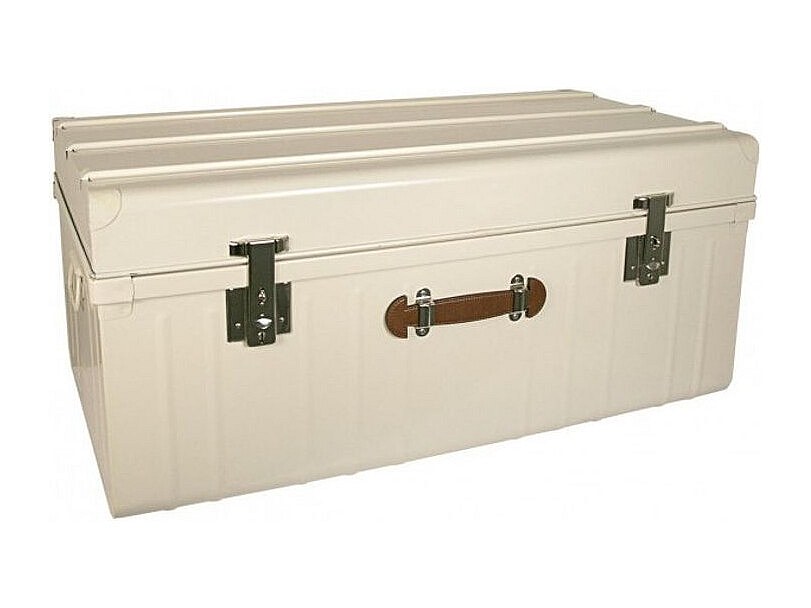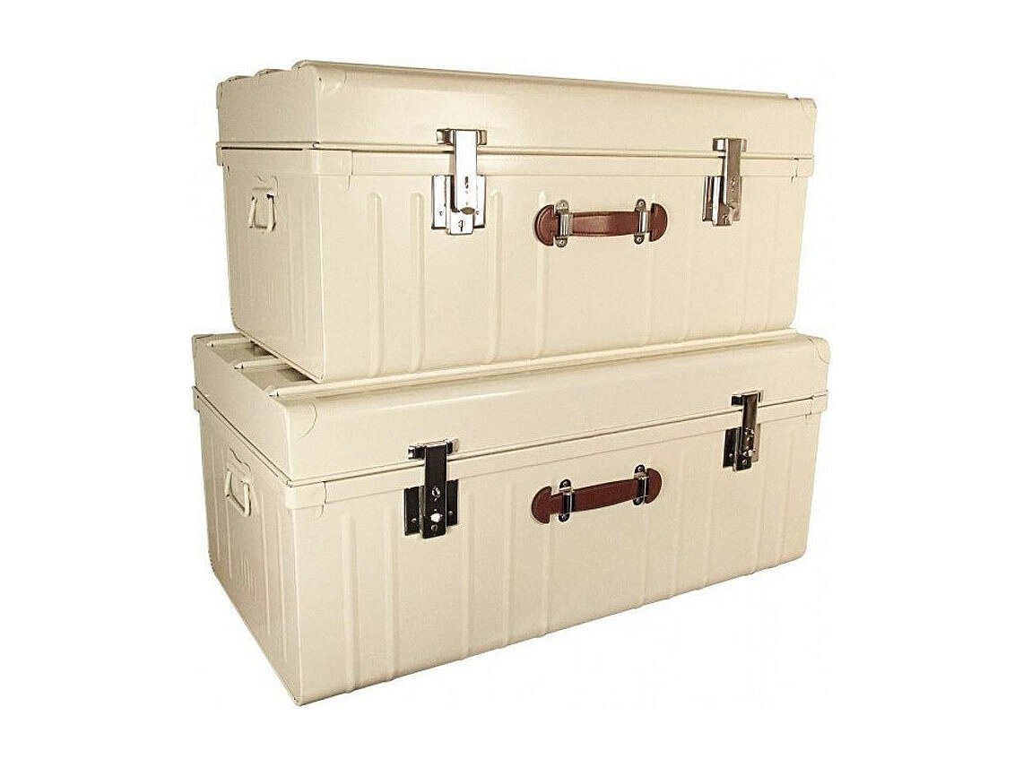 Malle métallique crème avec poignée simili cuir - Lot de 2