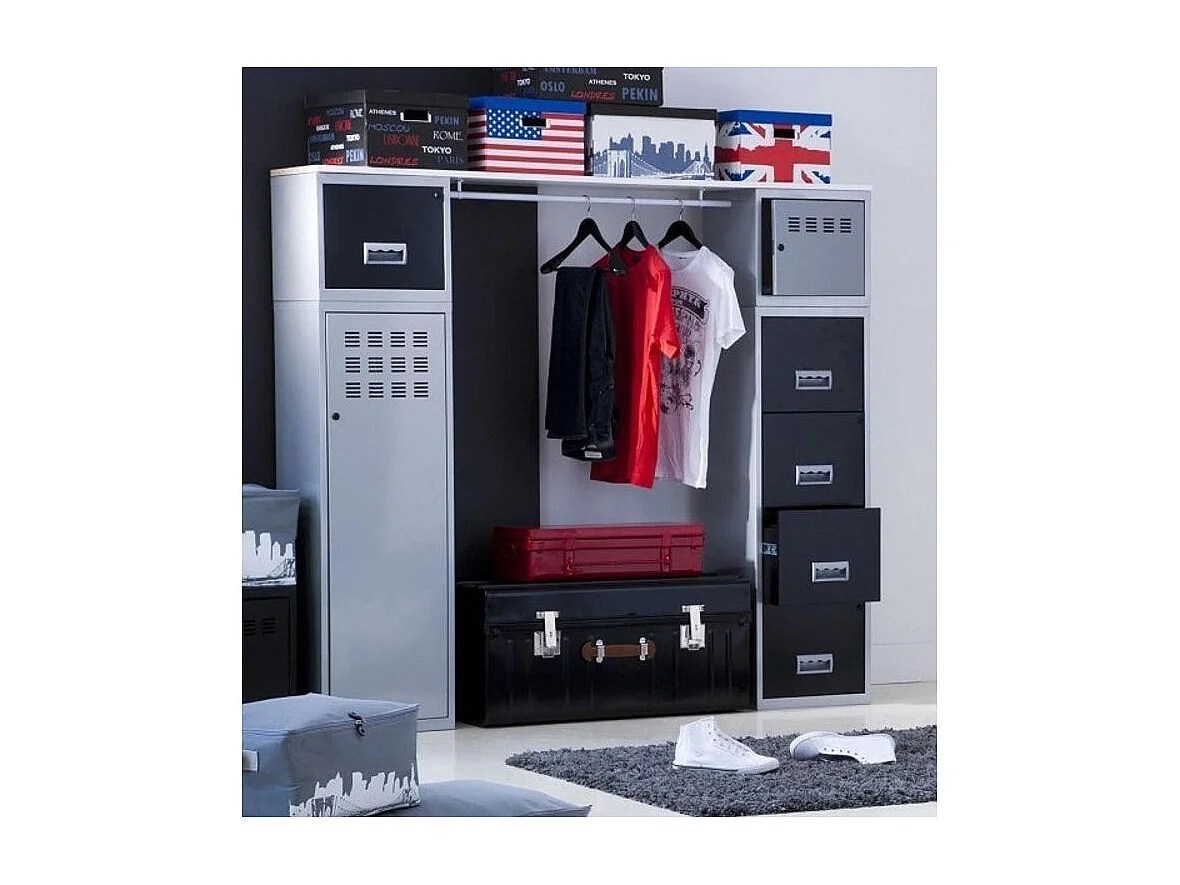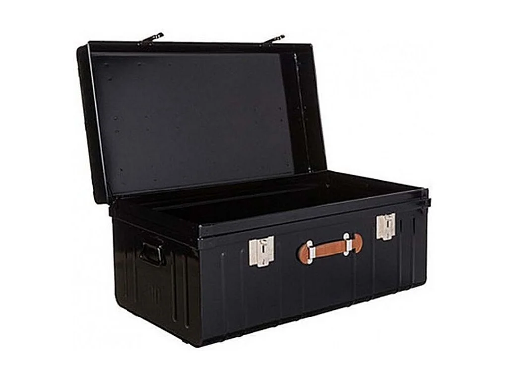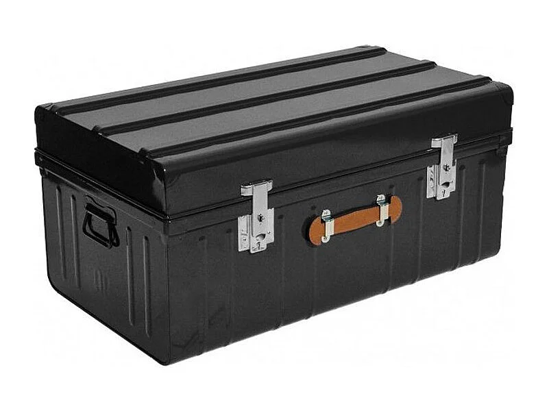 Malle métallique noire avec poignée simili cuir L90xH43xP50