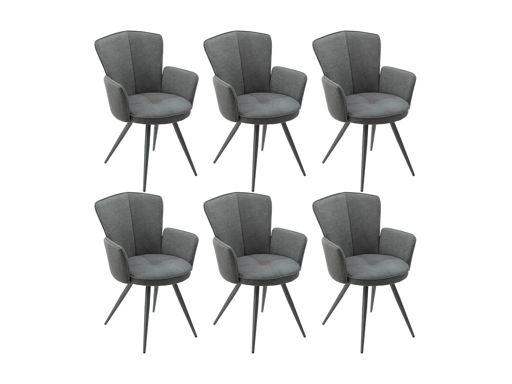 MALO - Lot de 6 Fauteuils Matelassés Gris Piètement Mat
