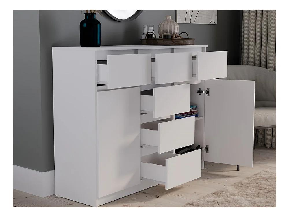 MALWA - Commode 6 tiroirs et 2 portes - 100x120x40 - chambre/bureau/salon - Blanc