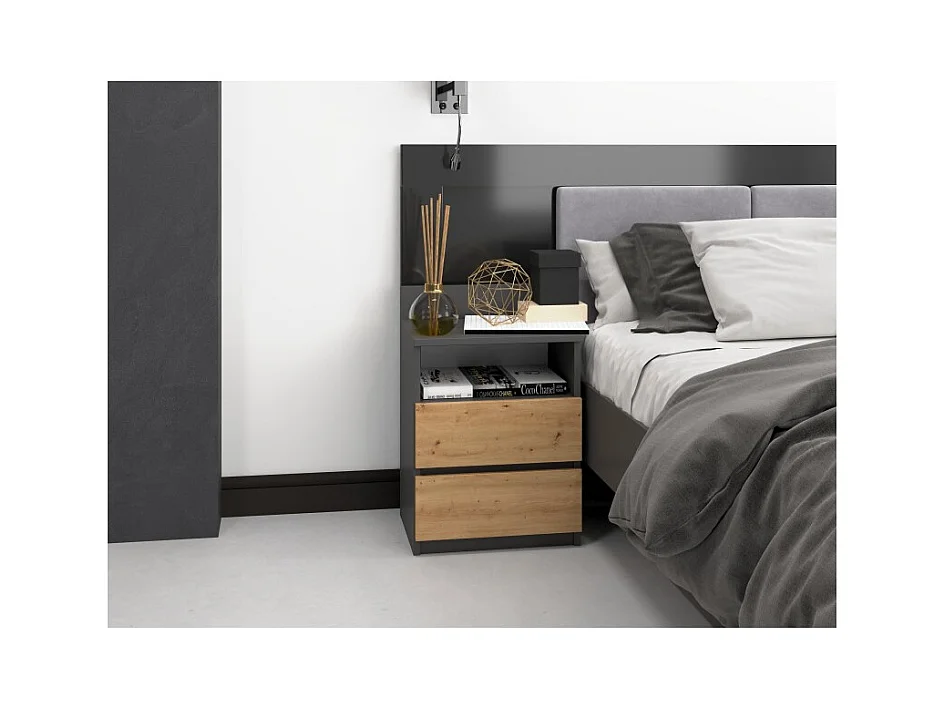 ASTER T1 - Table de chevet avec 2 tiroirs - 59x40x32 cm - Table de nuit - Style scandinave