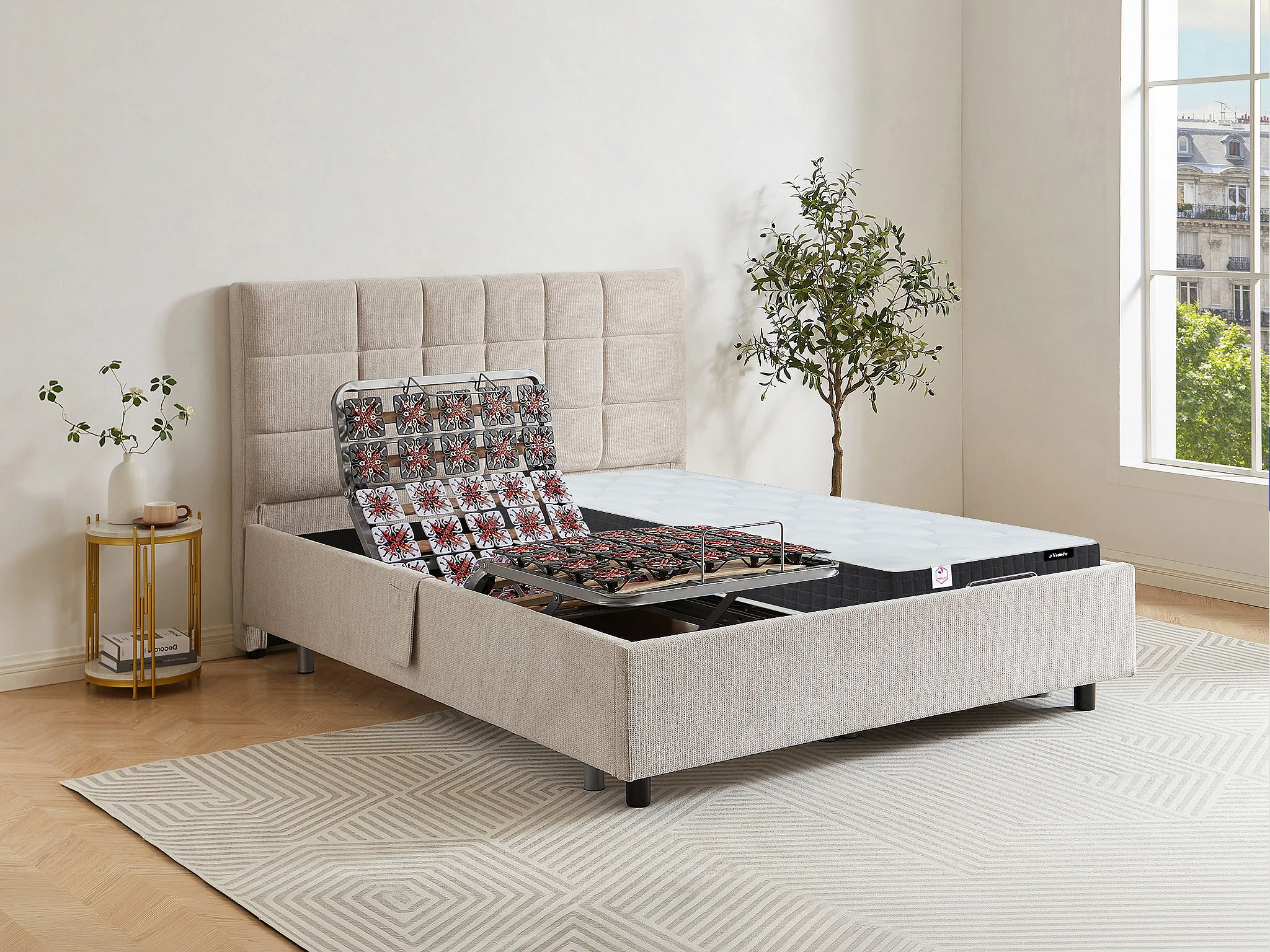 Lit électrique de relaxation déco tout plots + matelas ressorts ensachés et mémoire de forme - 2 x 90 x 200 cm - Tissu - Beige - MANAM de YSMÉE