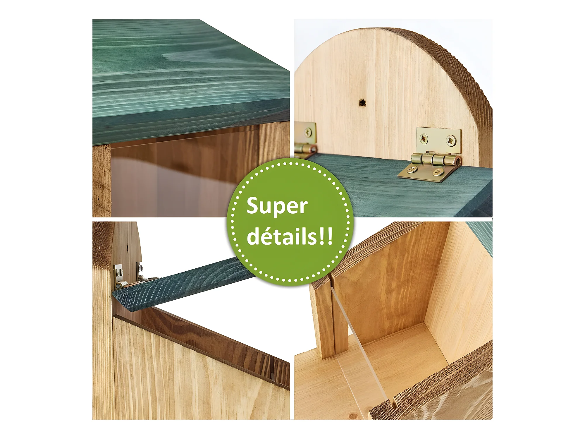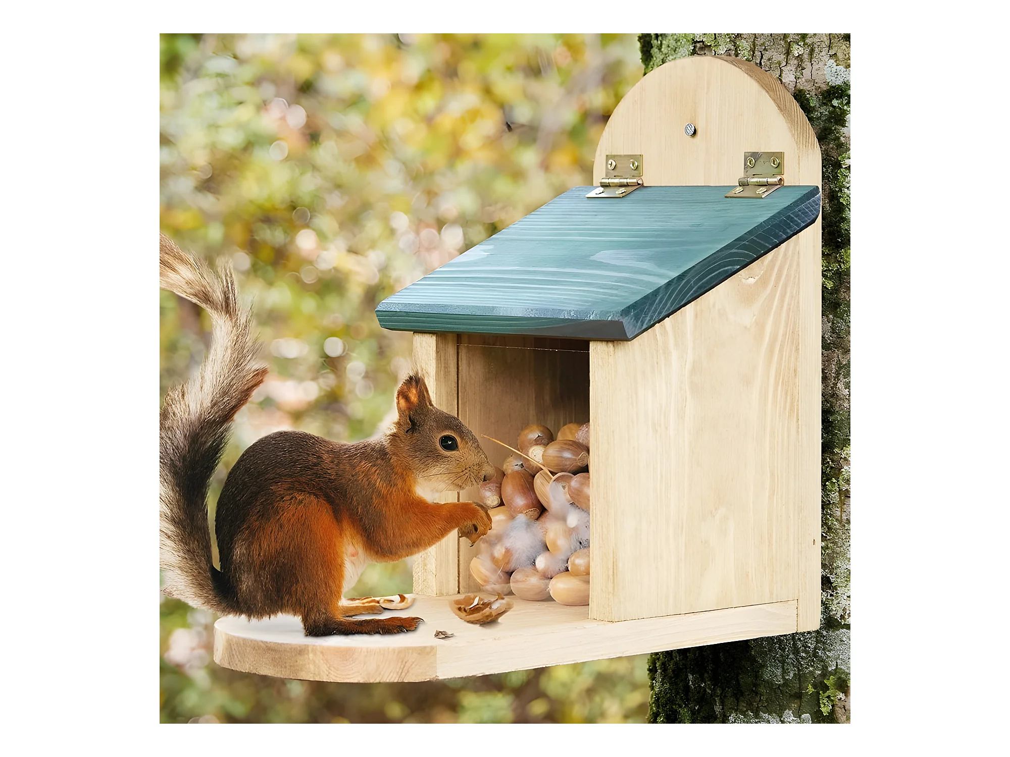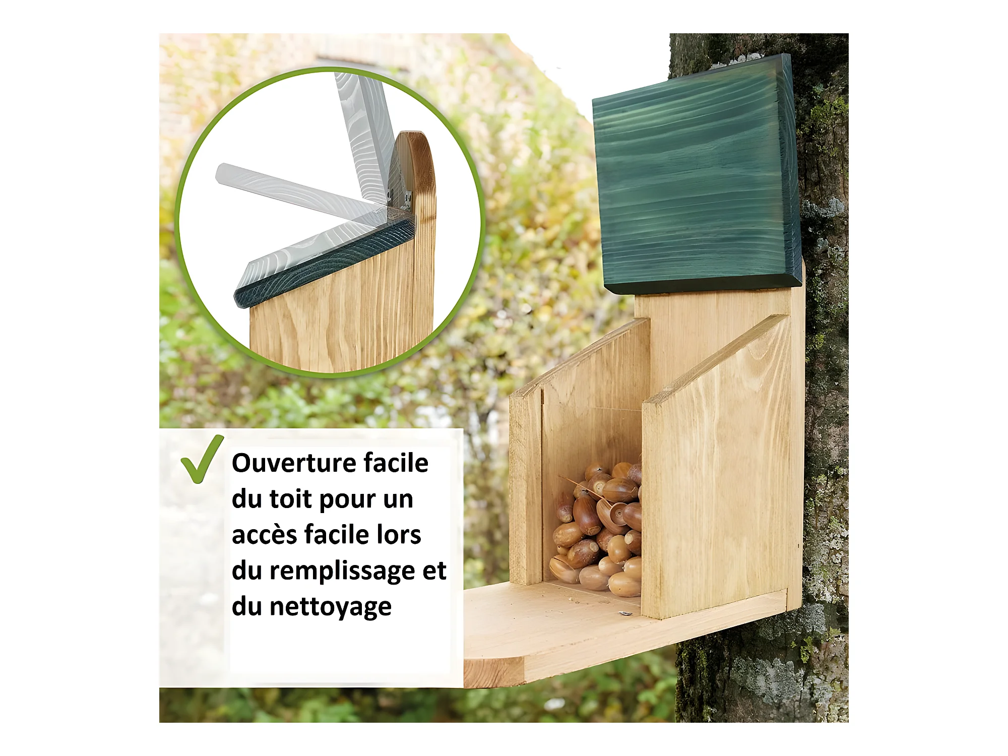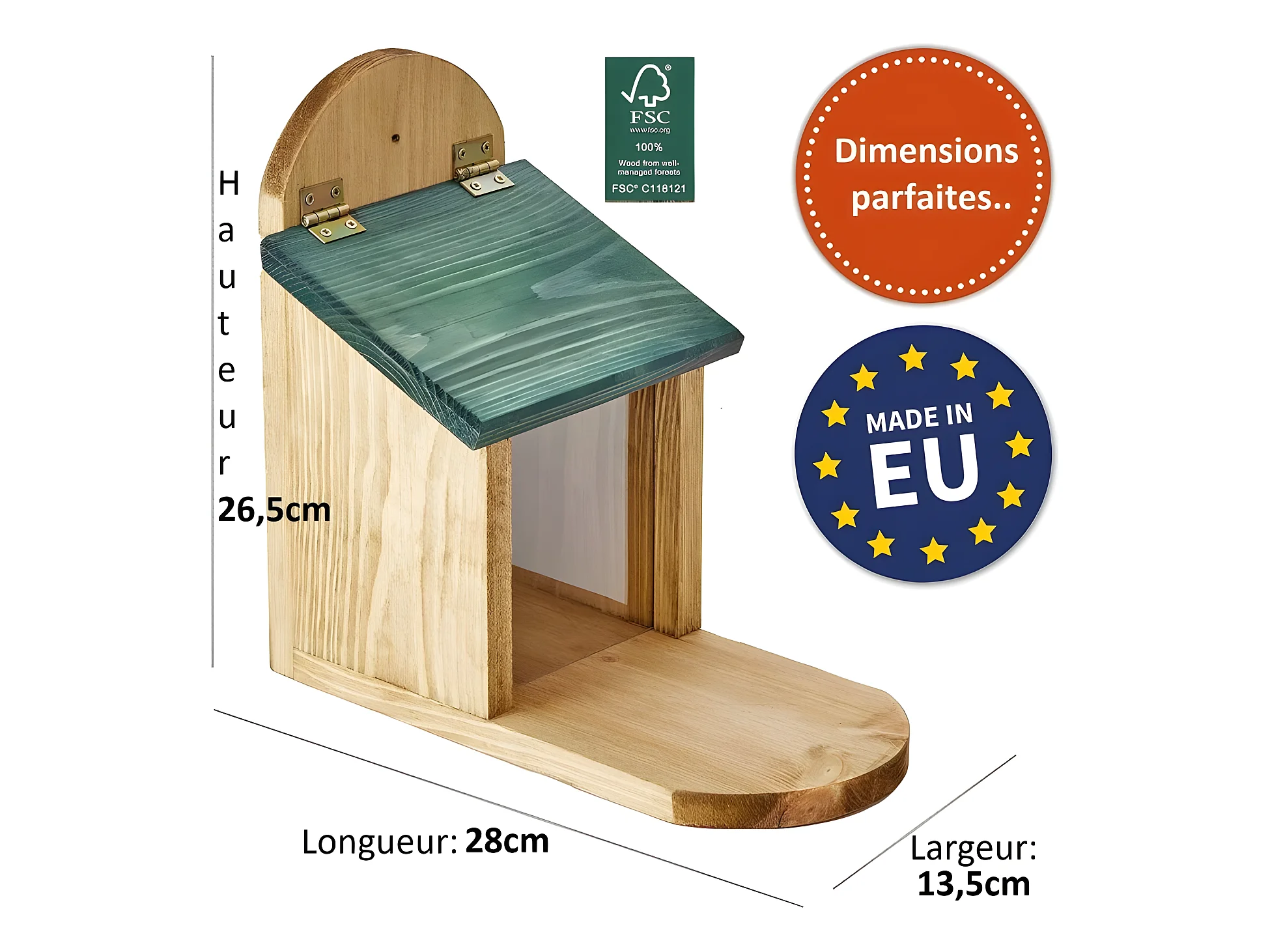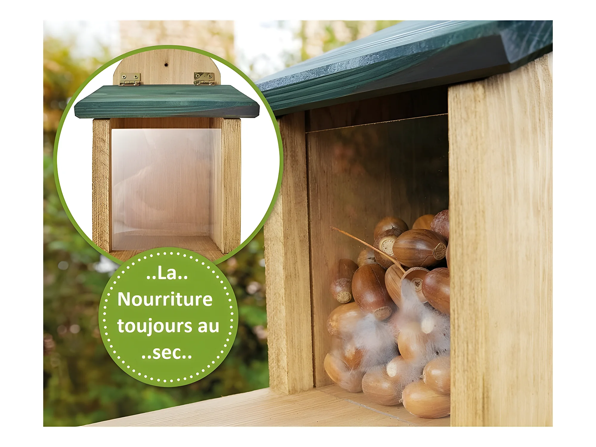 Mangeoire Écureuil Distributeur de nourriture éxtérieur robuste en bois massif et vitre plexiglas de haute qualité"328 Écu"