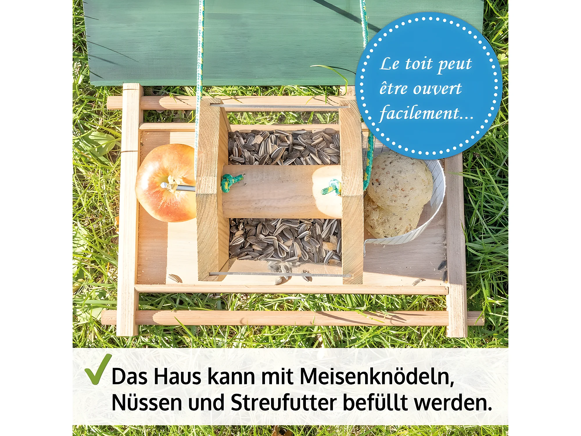Mangeoire Écureuil Distributeur de nourriture éxtérieur robuste en bois massif et vitre plexiglas de haute qualité"328 Écu"