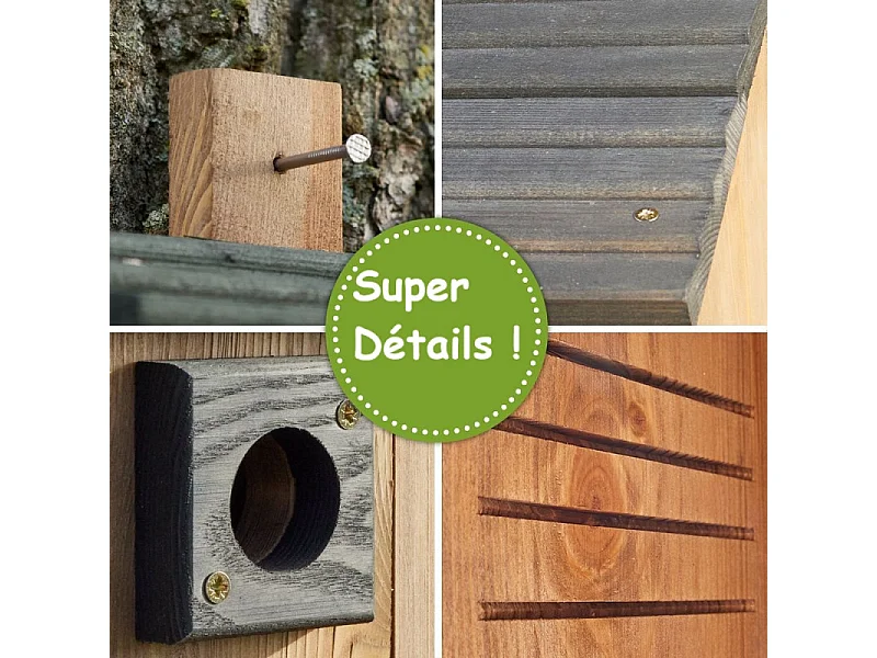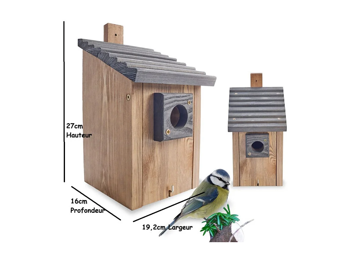 Mangeoire oiseaux extérieur à suspendre pour oiseaux sauvages en bois massif toit pente gris