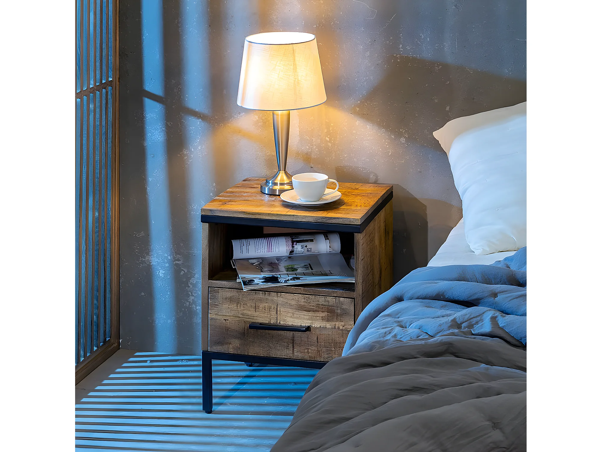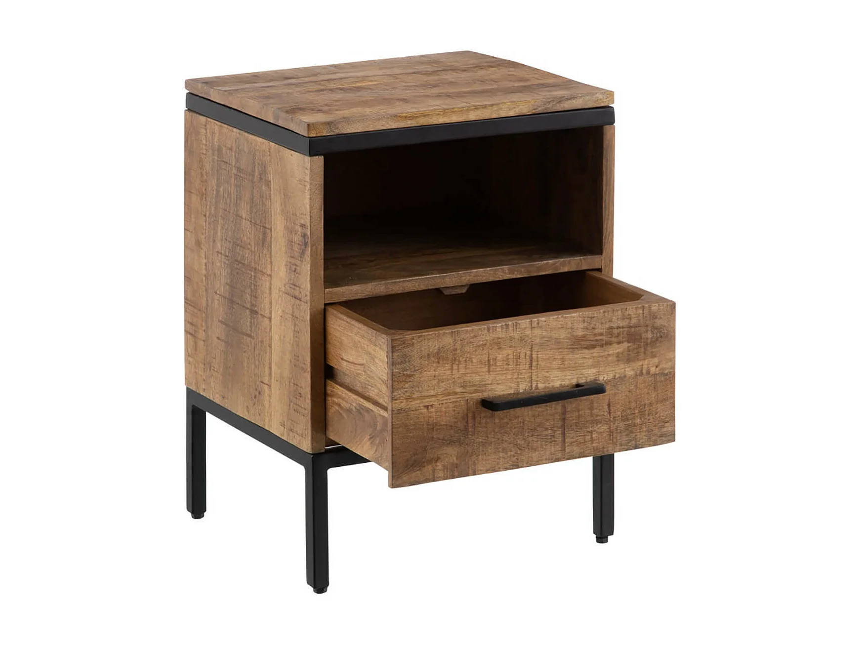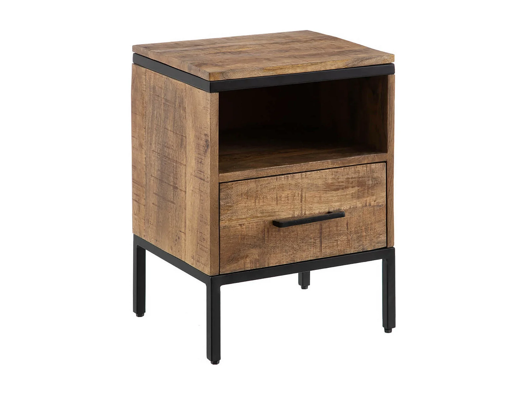 MANILLA - Chevet 1 Niche 1 Tiroir Métal et Manguier Massif