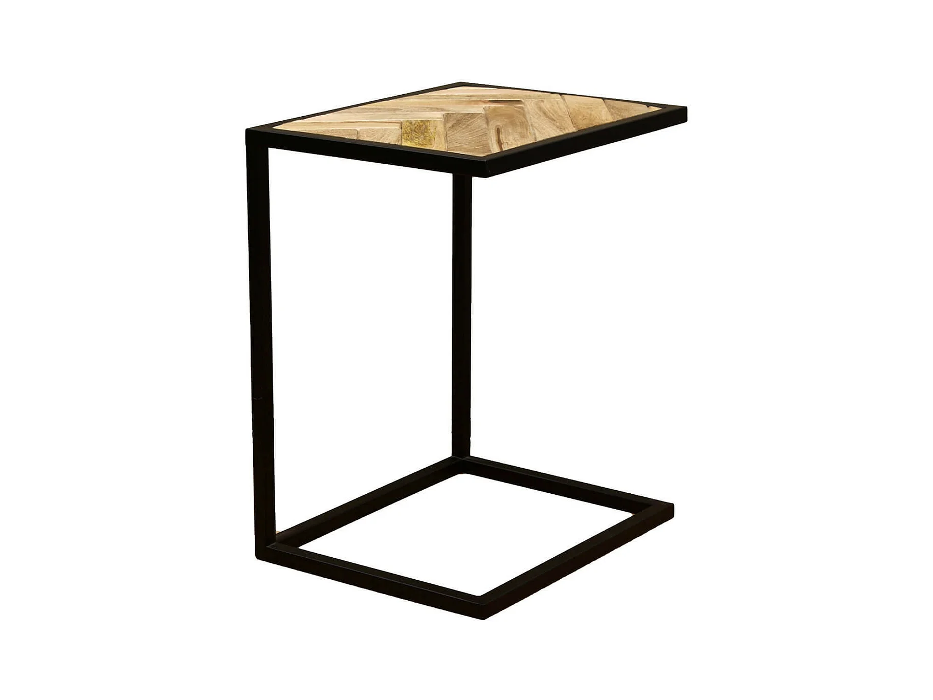 VOLLRAD - Bout de Canapé Carré Acier et Bois Aspect Naturel