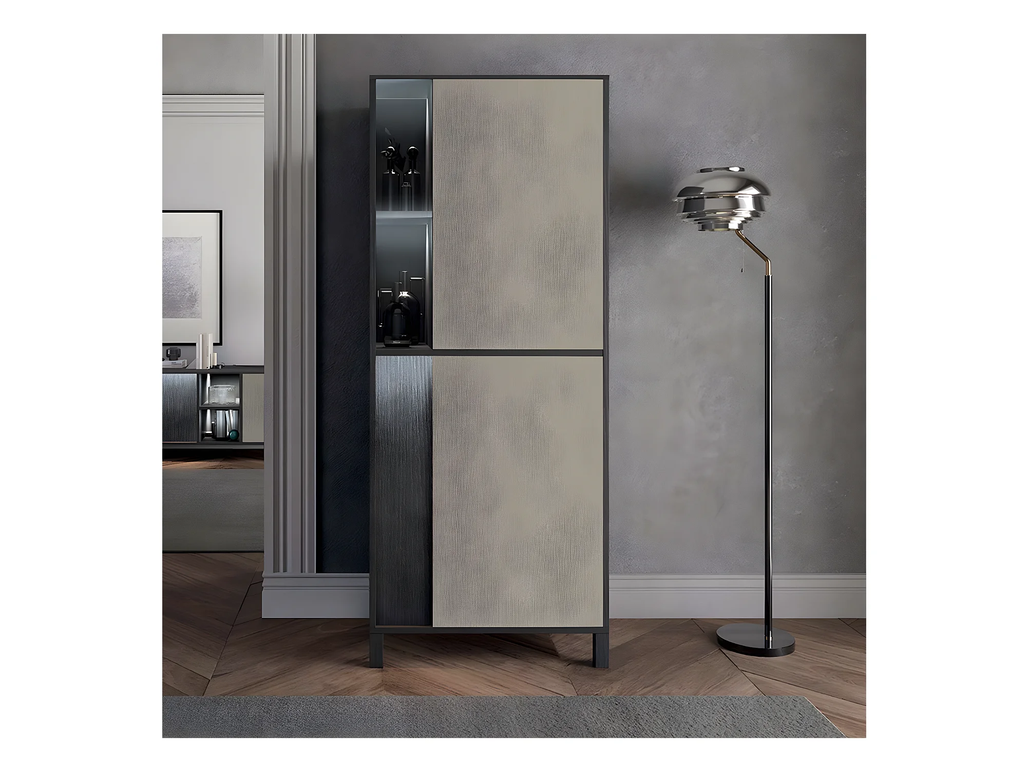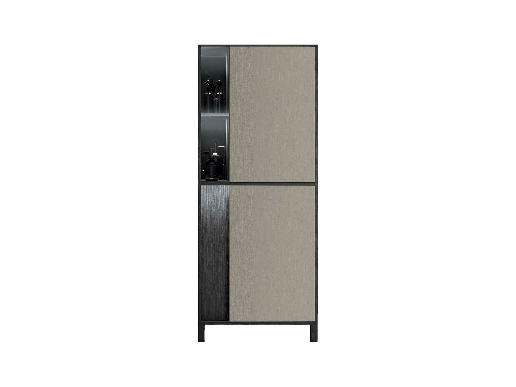 MANTA - Rangement Droit 2 Portes Effet Chêne Foncé et Champagne avec Leds