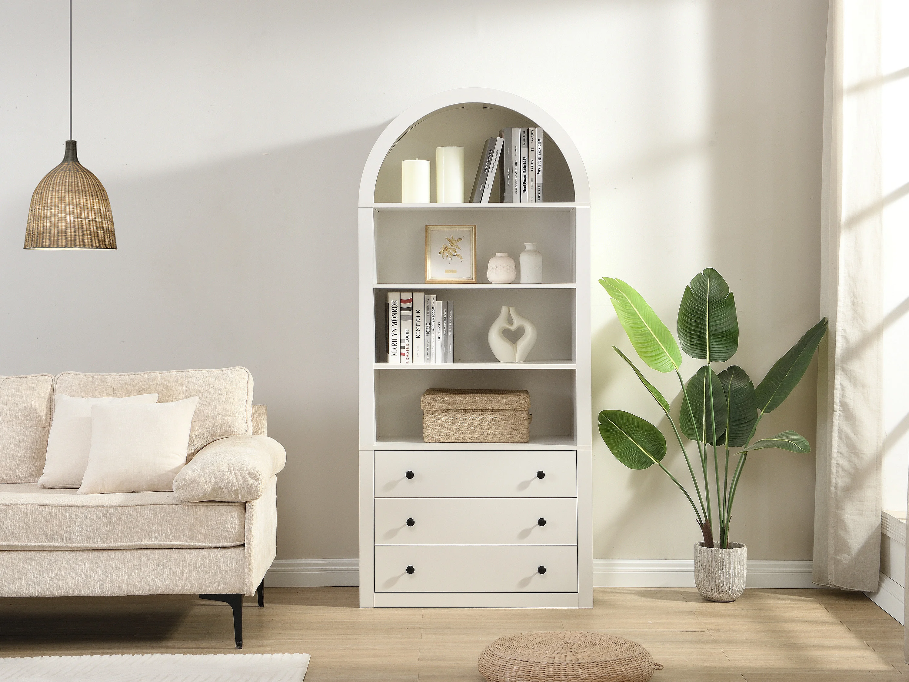 Bibliothèque avec 3 tiroirs et 4 niches en MDF - Blanc - MARALYN