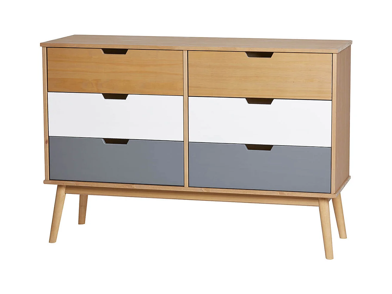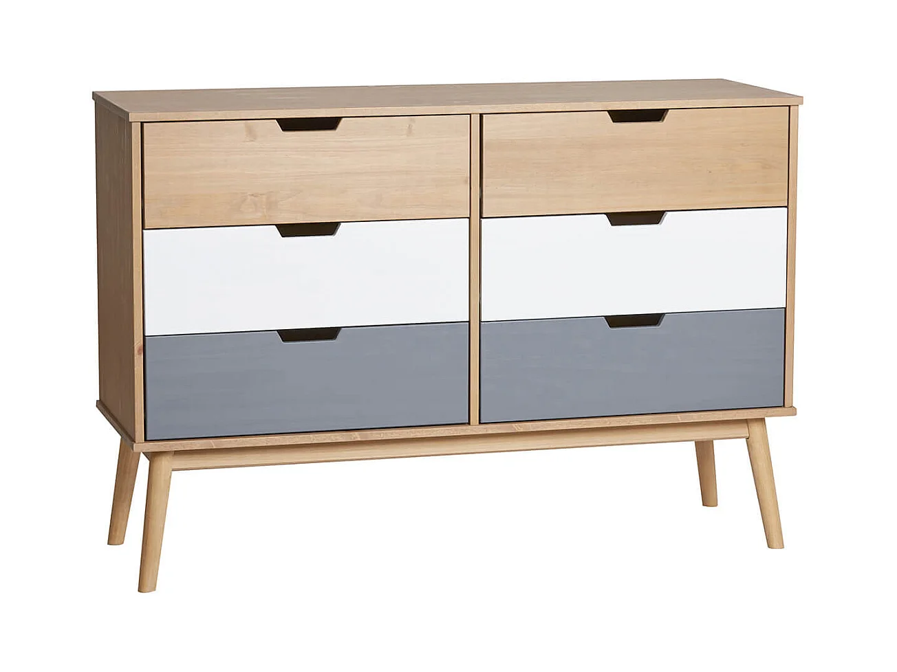 MARAS - Commode 6 Tiroirs Bois Massif, Blanc et Gris