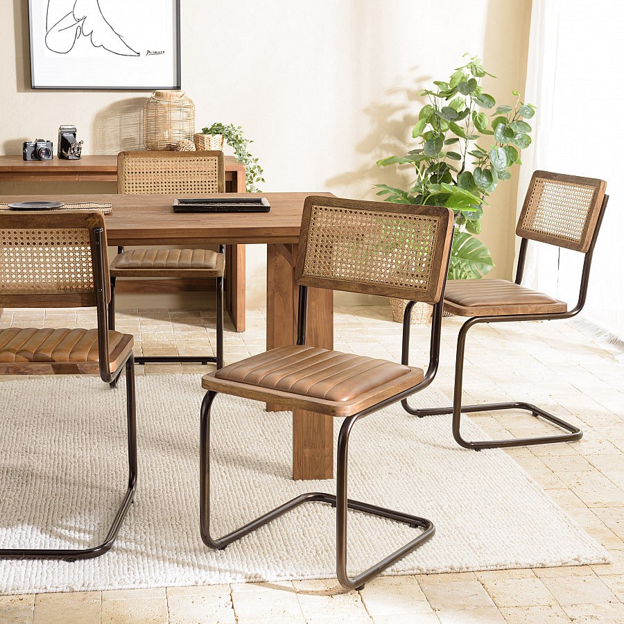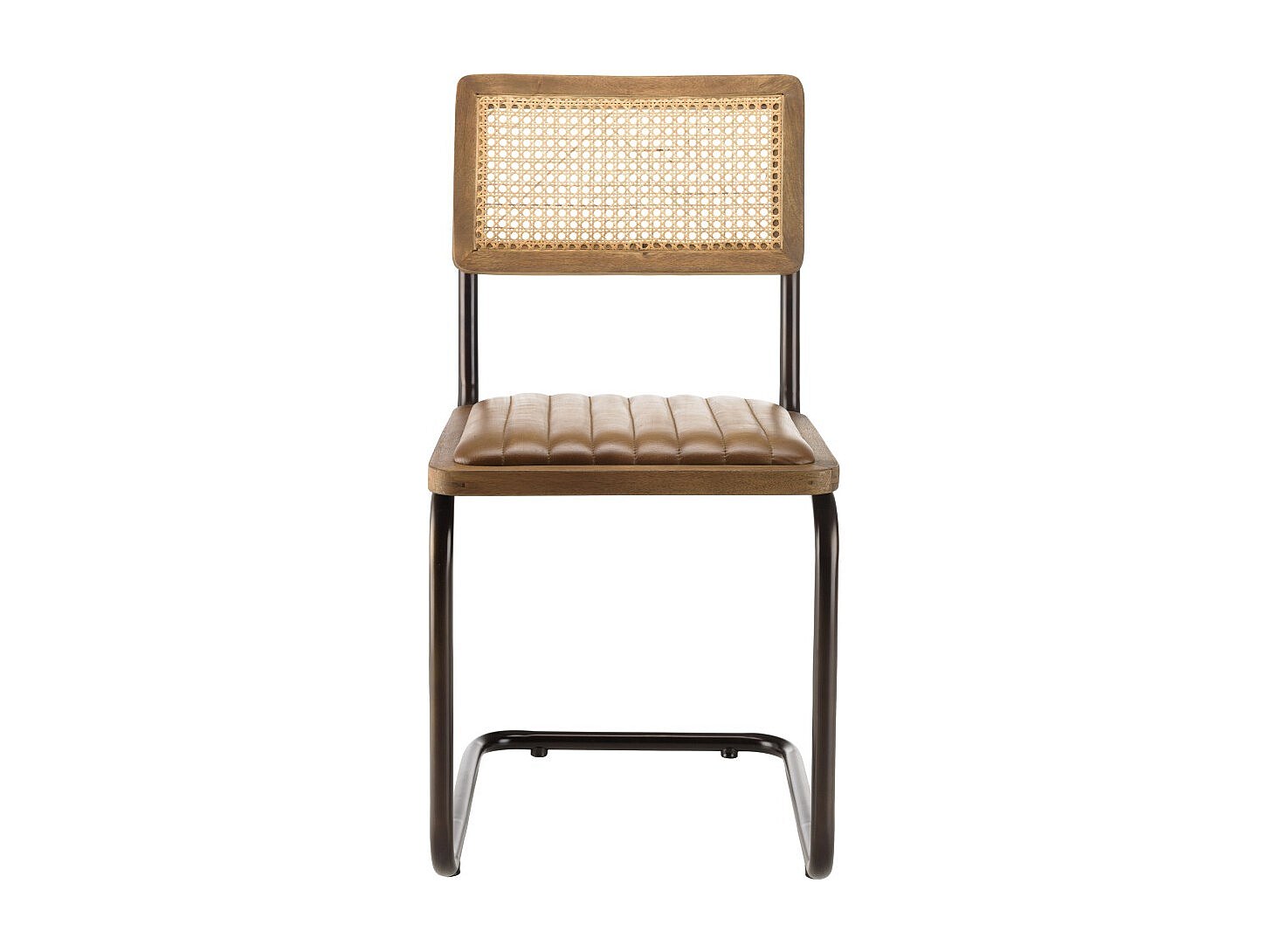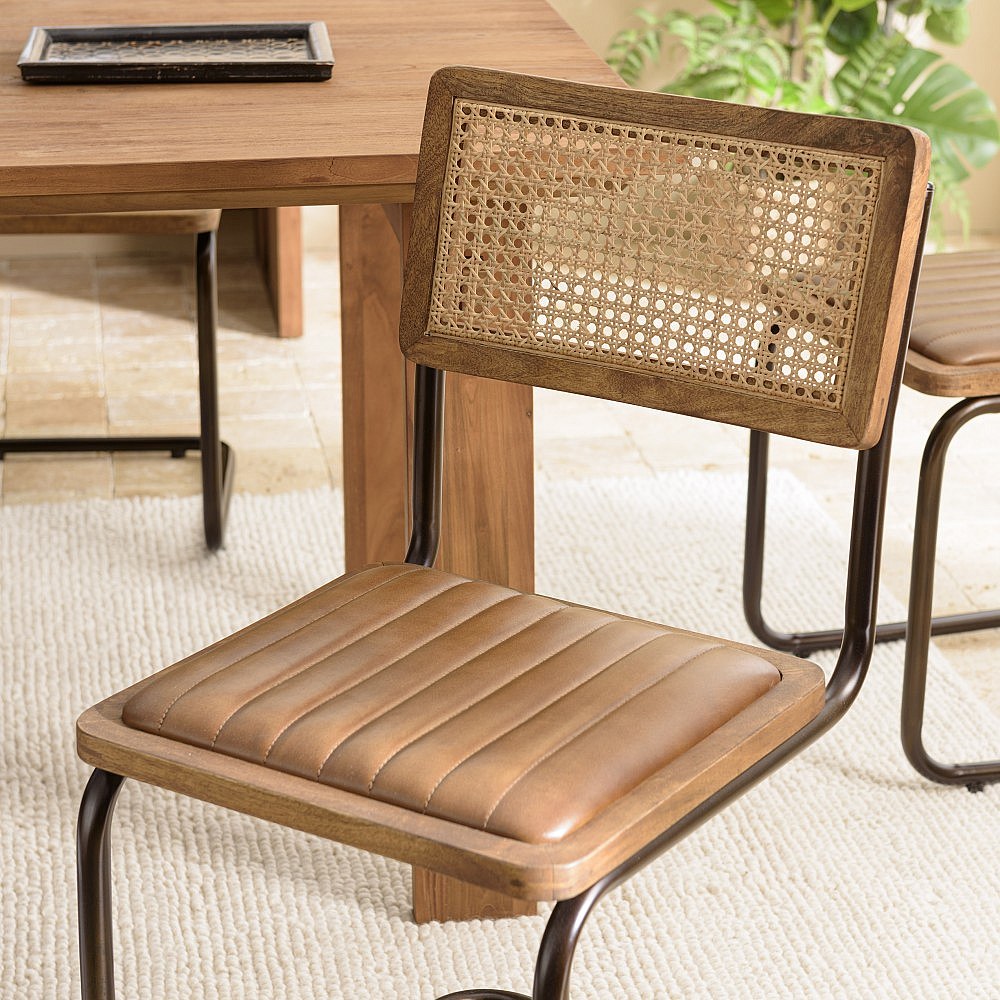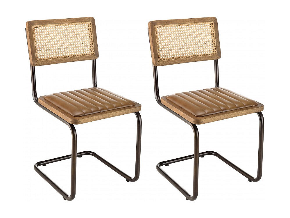 MARCEL - Lot de 2 chaises manguier assise matelassée cuir pieds rétro