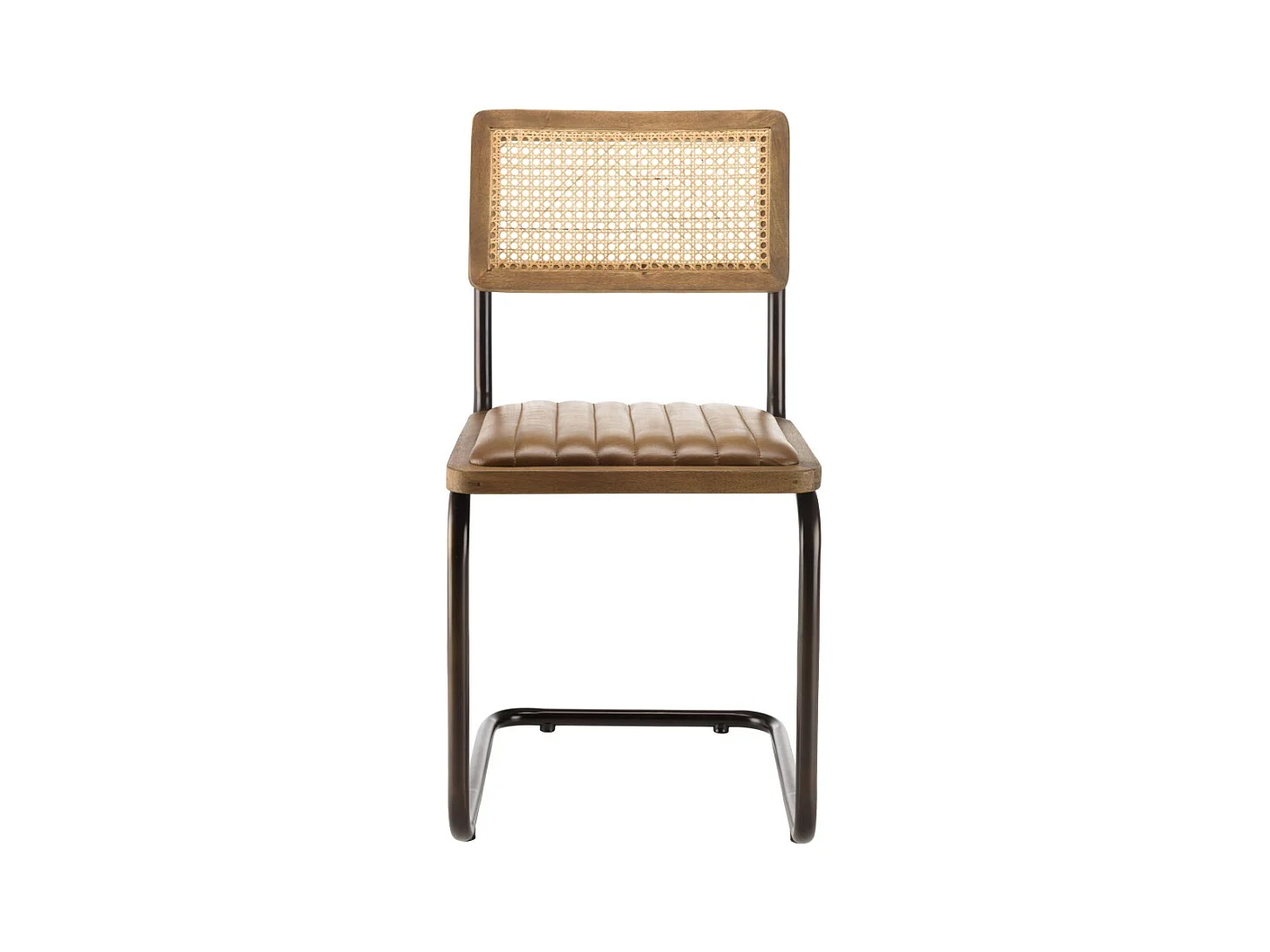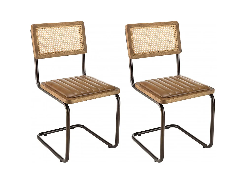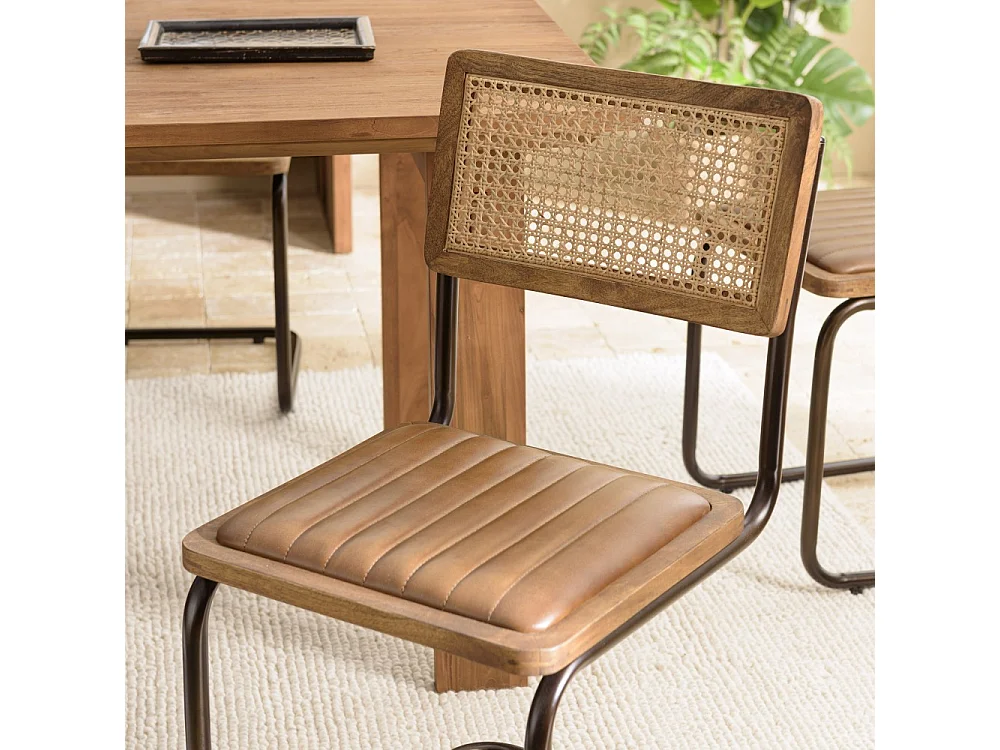 MARCEL - Lot de 2 chaises assise cuir dossier bois de manguier / rotin