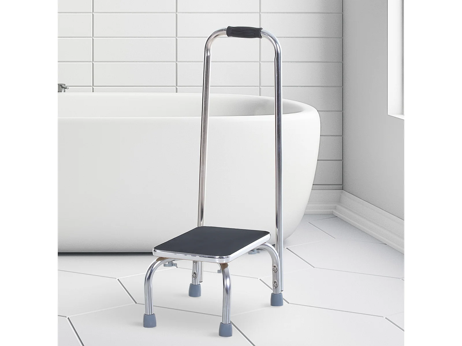 Marche avec barre d'appui - marchepied de sécurité - marche d'accès au bain - plateforme & patins antidérapants - acier galvanisé