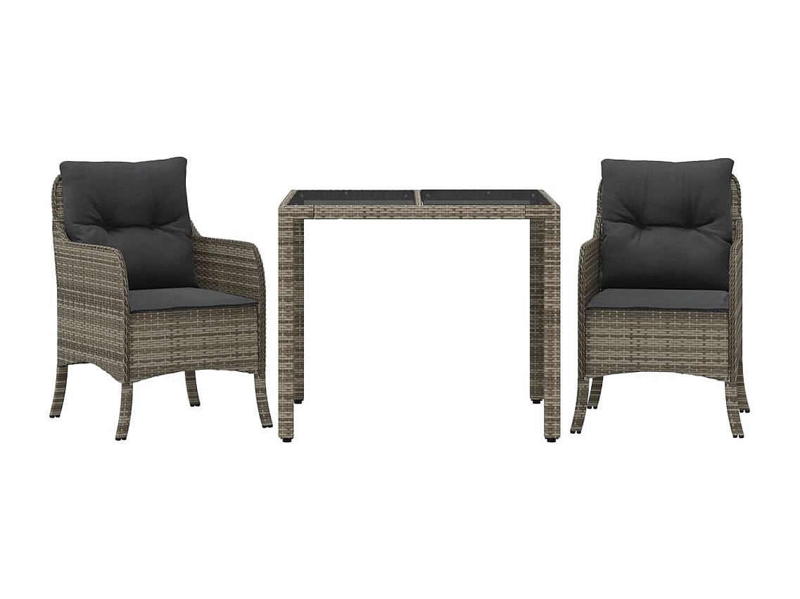 Marco Gianluca Ensemble à manger de jardin 3 pcs coussins gris résine tressée
