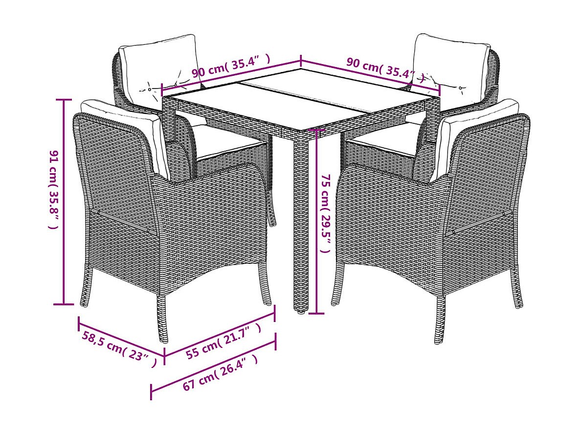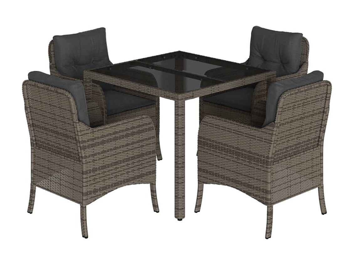 Marco Gianluca Ensemble à manger de jardin 5 pcs coussins gris résine tressée