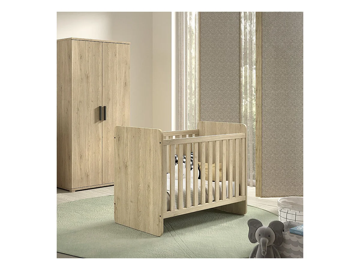 MARCO - Lit Bébé 60x120cm Evolutif en 90x200cm Aspect Chêne clair