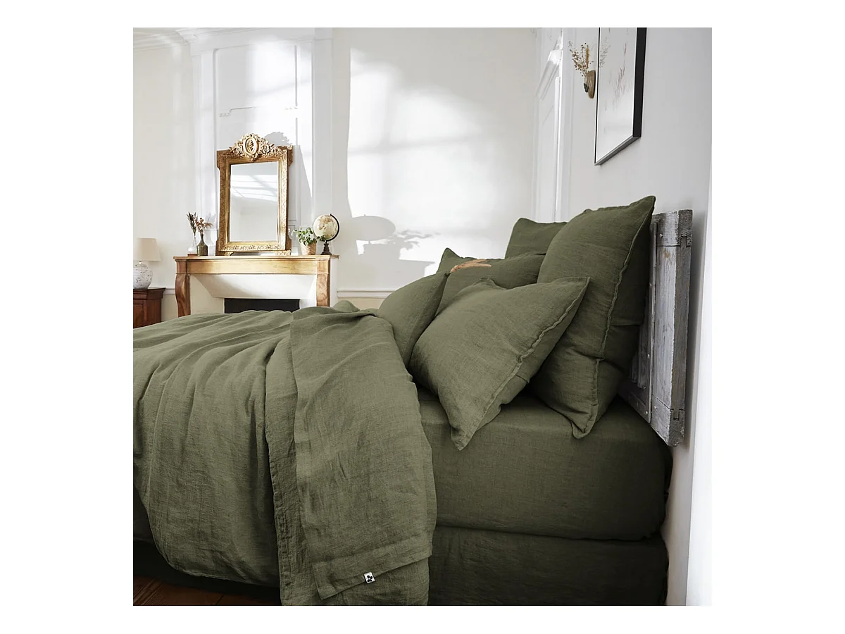 MARGAUX - Drap Housse 180x200cm Lin Lavé Coloris Thym