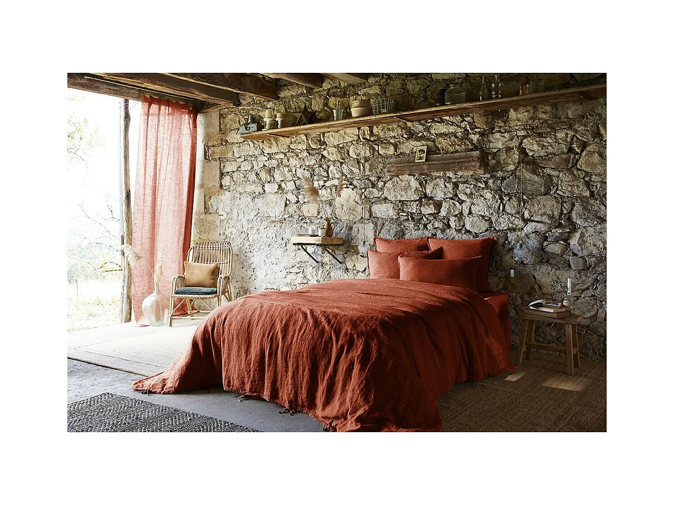MARGAUX - Drap Plat 240x300cm Lin Lavé Coloris Paprika