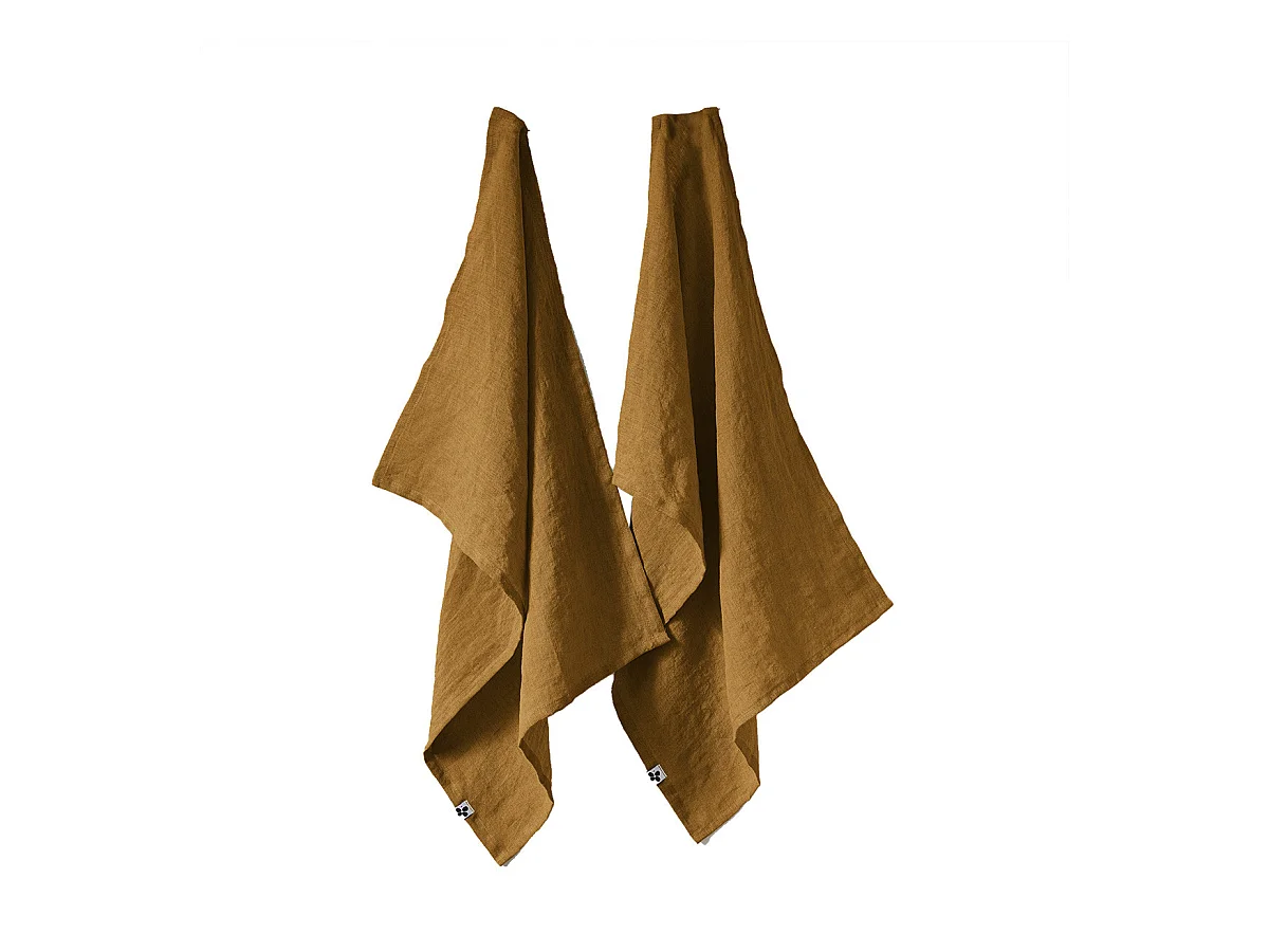 MARGAUX - Lot de 2 Torchons Essuie-vaisselle 50x70cm Lin Lavé Caramel