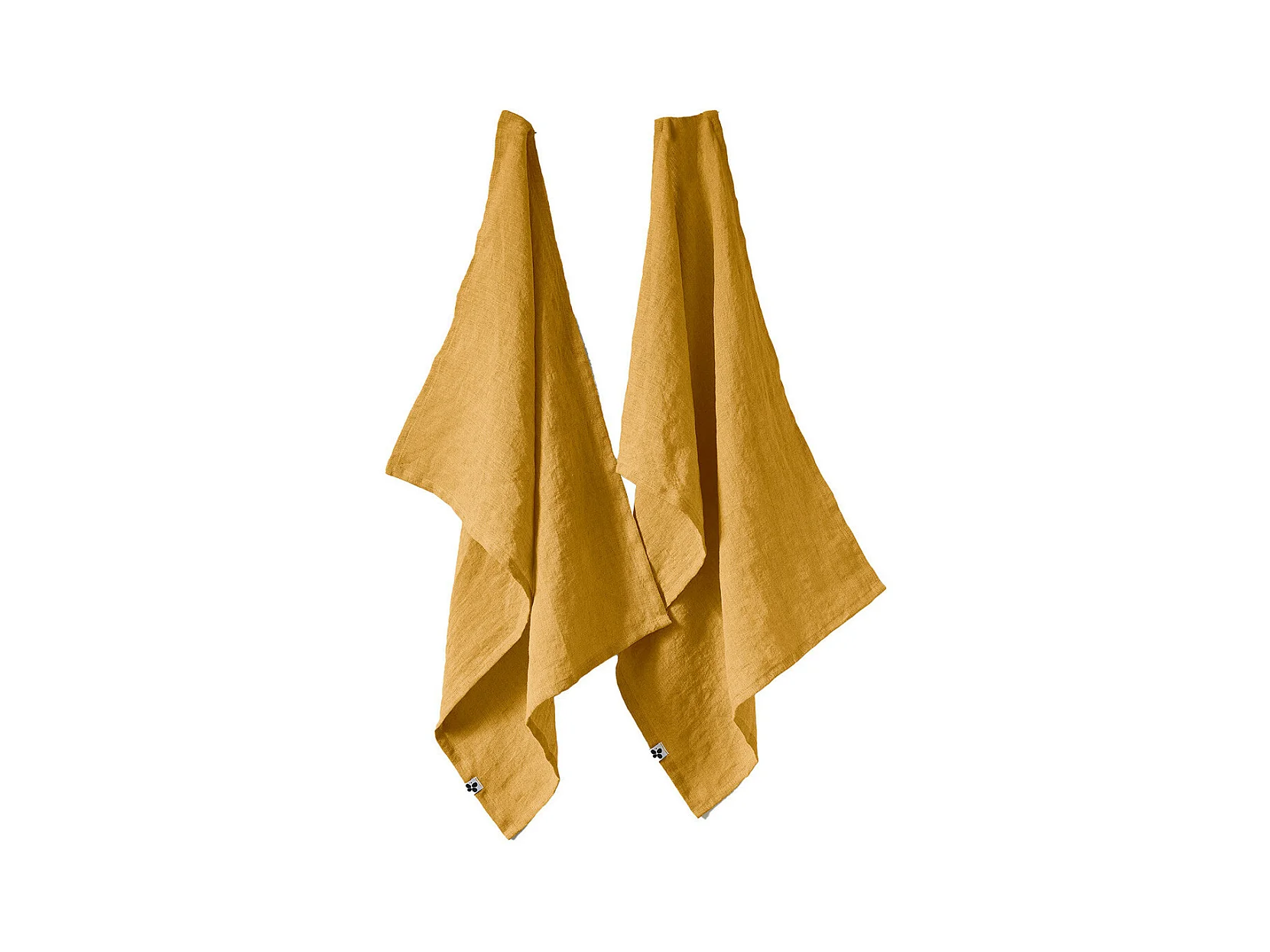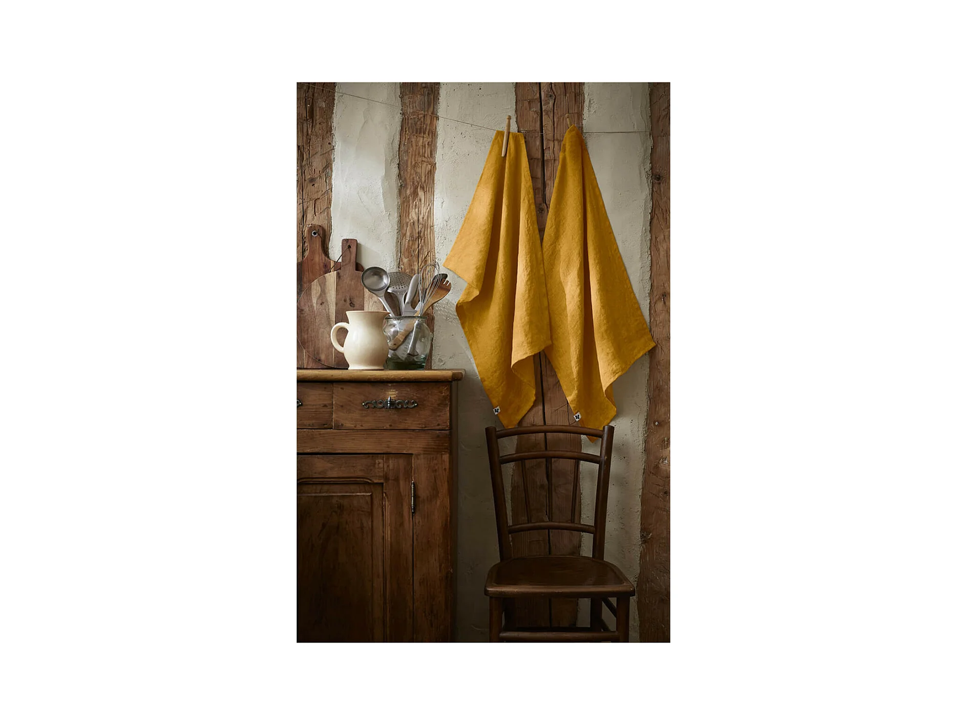MARGAUX - Lot de 2 Torchons Essuie-vaisselle 50x70cm Lin Lavé Miel