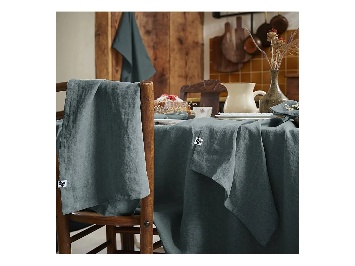 MARGAUX - Lot de 3 Serviettes 40x40cm Lin Lavé Coloris Ardoise