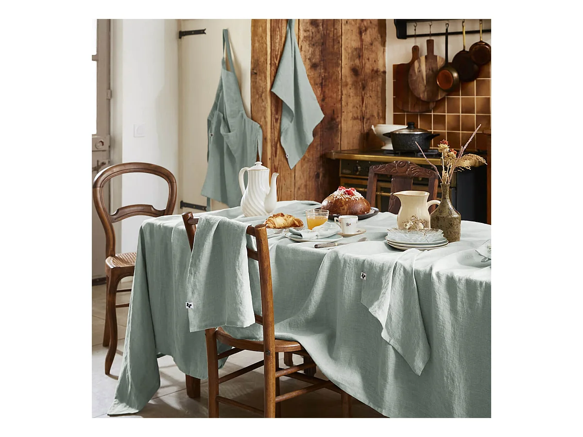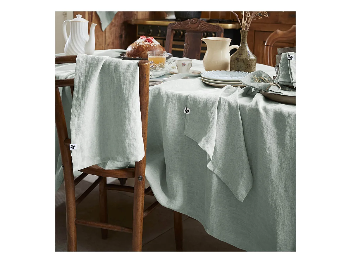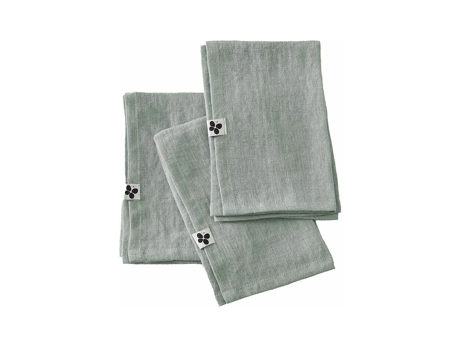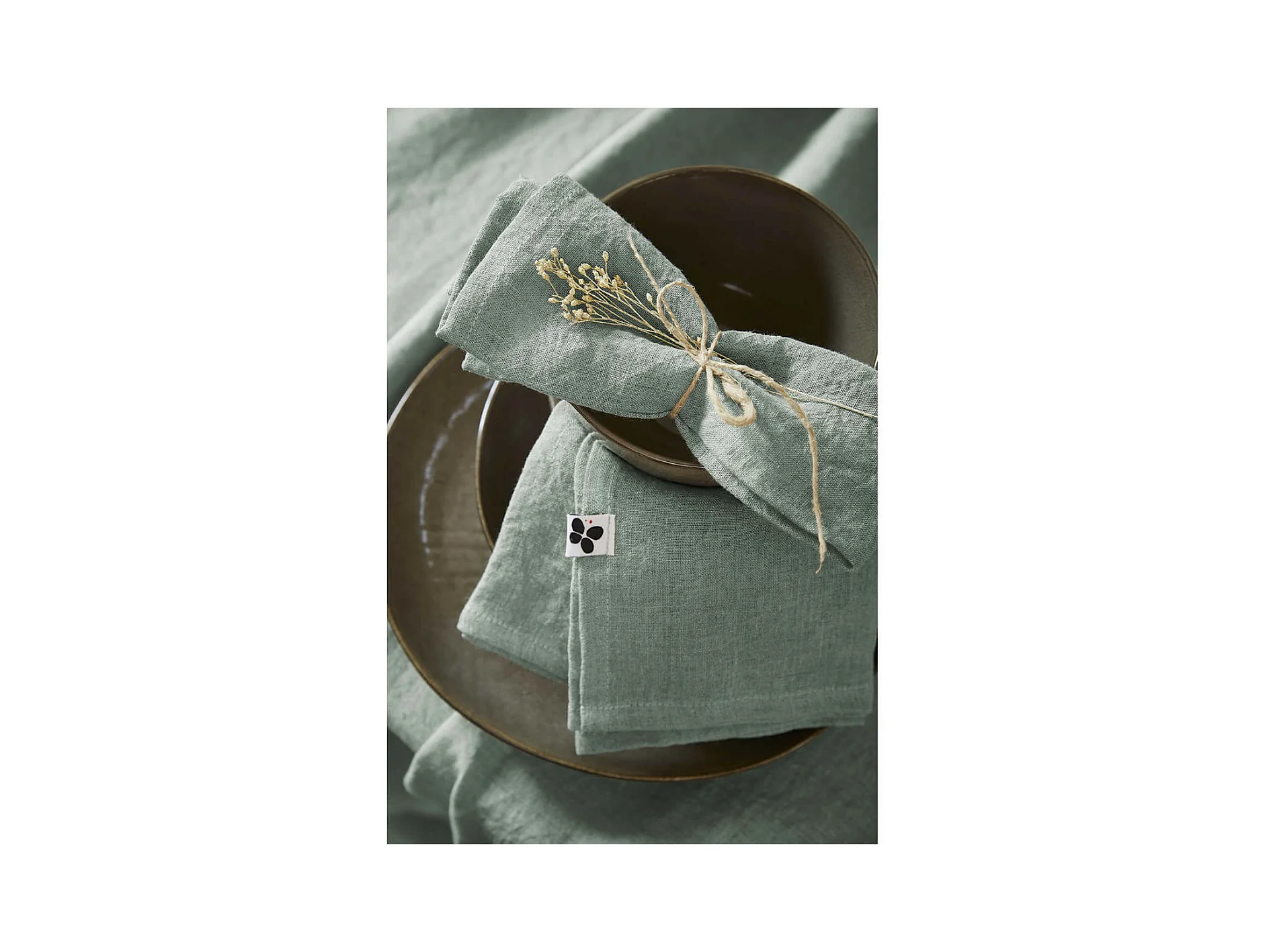 MARGAUX - Lot de 3 Serviettes 40x40cm Lin Lavé Coloris Eucalyptus