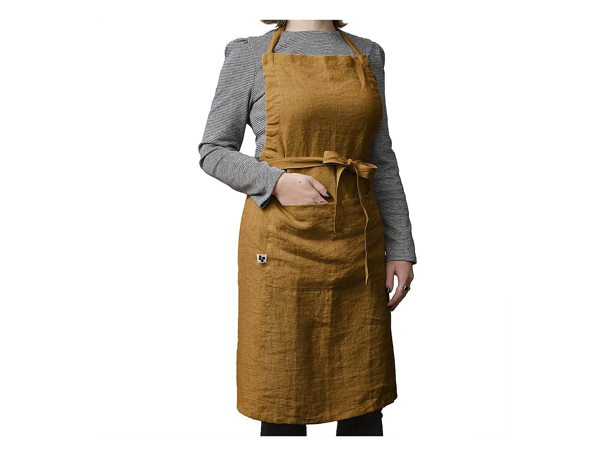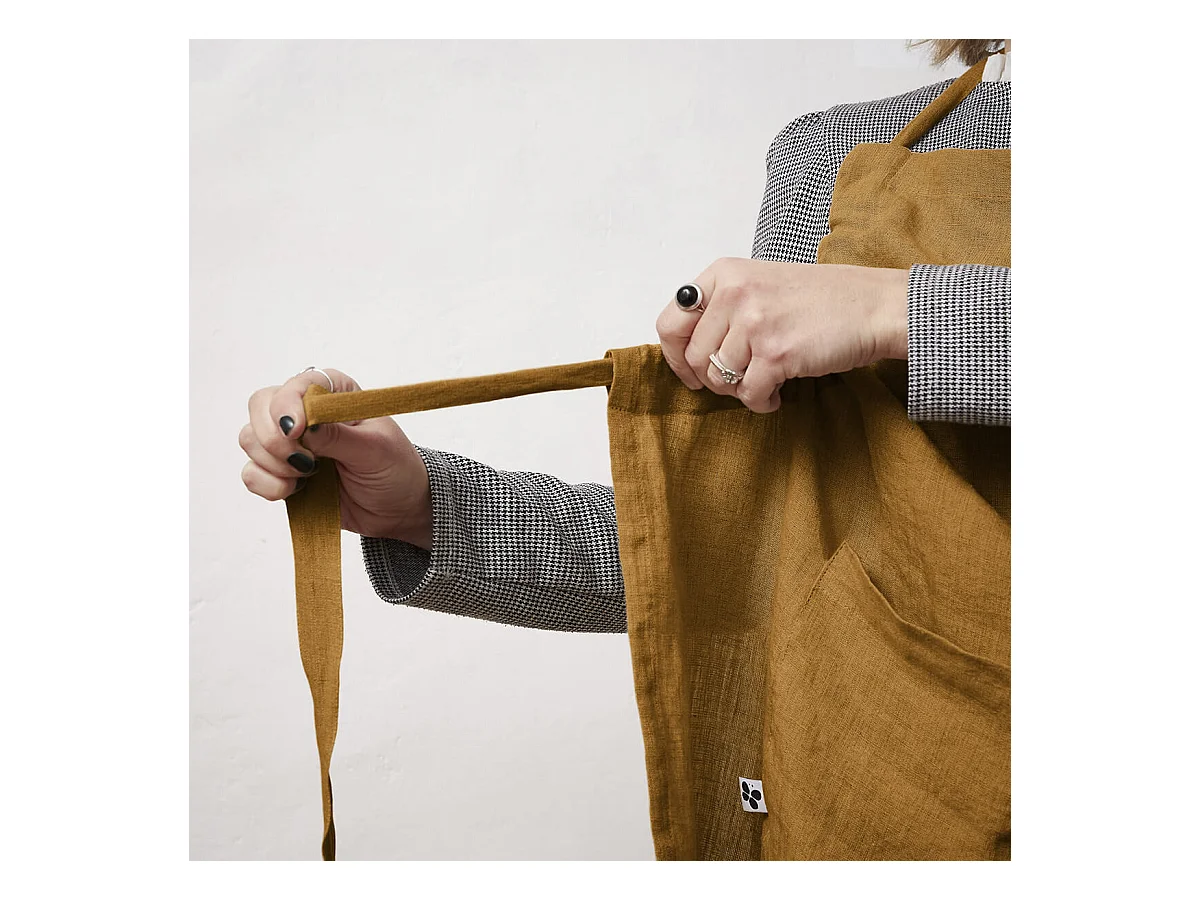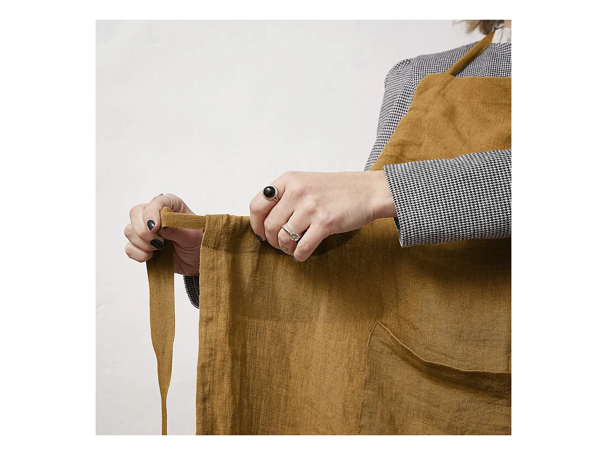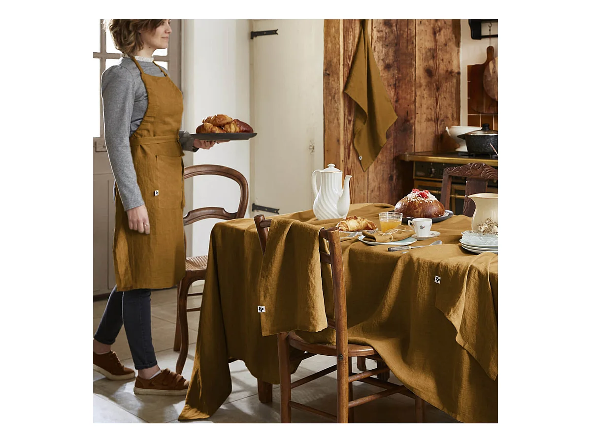 MARGAUX - Tablier Ajustable avec Poche 70x85cm Lin Lavé Coloris Caramel