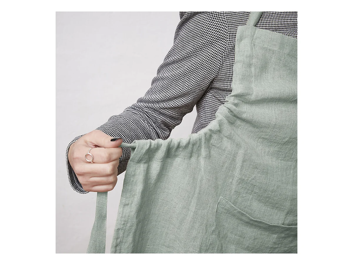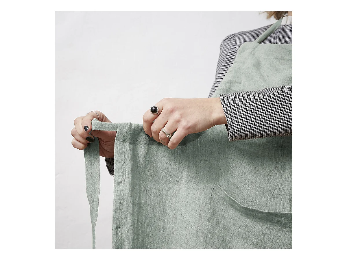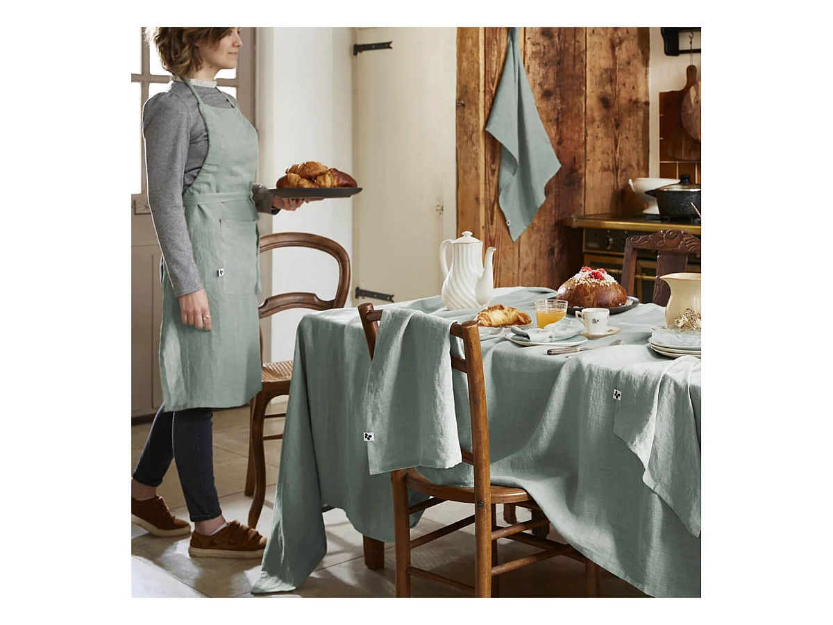 MARGAUX - Tablier Ajustable avec Poche 70x85cm Lin Lavé Coloris Eucalyptus