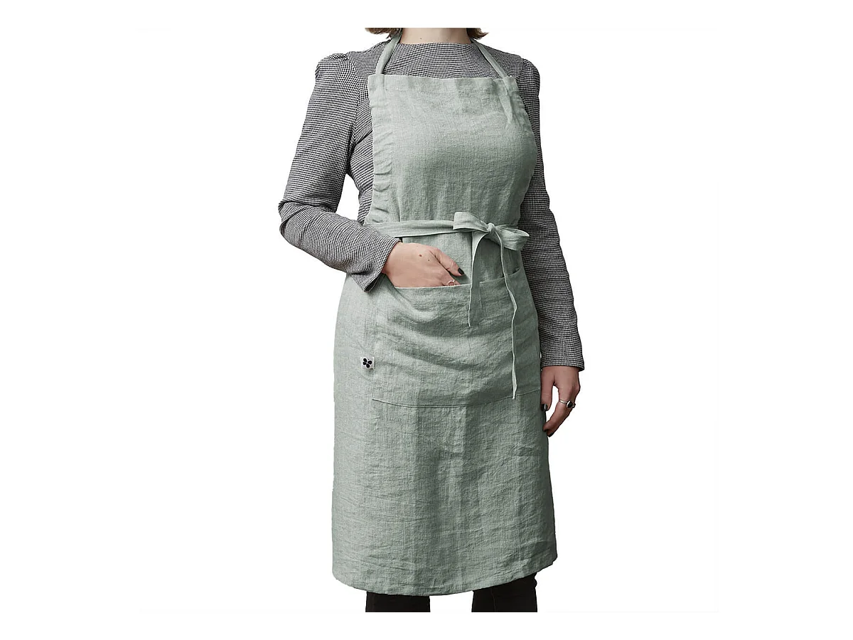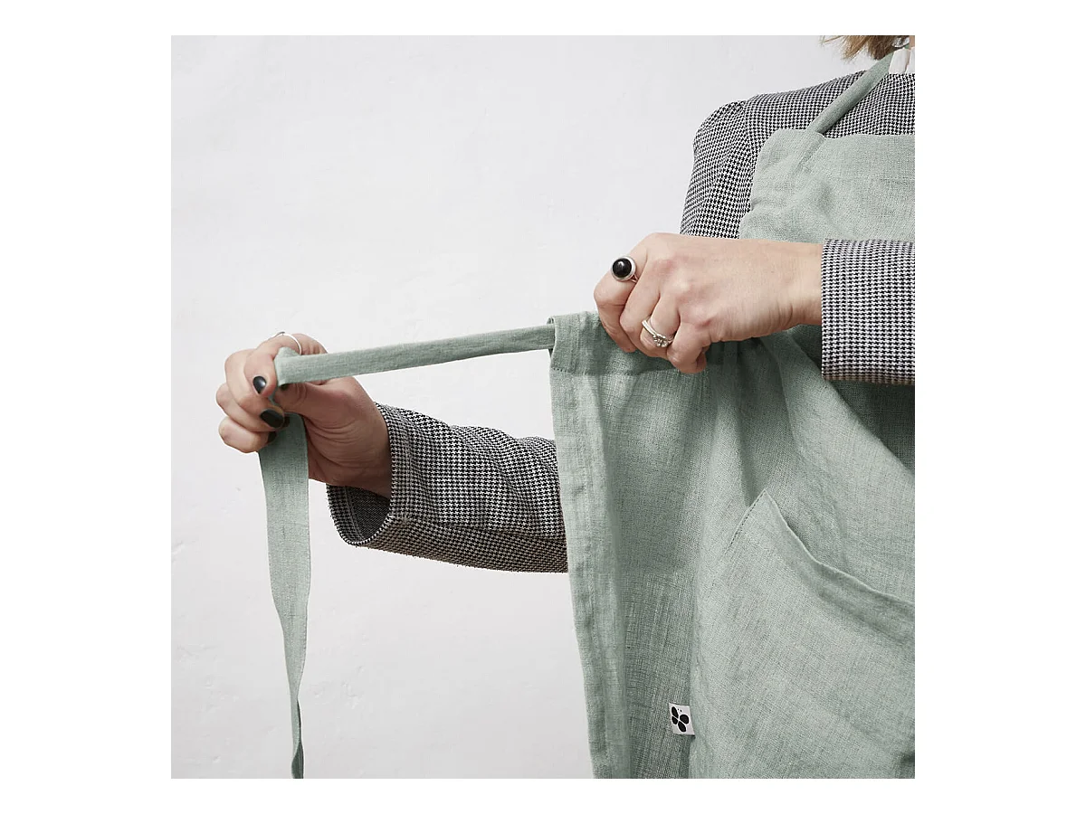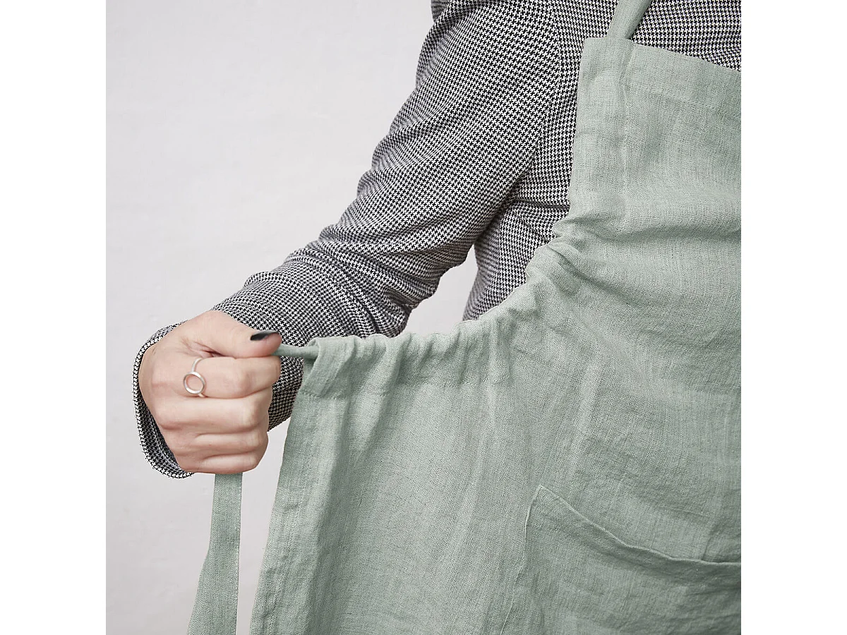 MARGAUX - Tablier Ajustable avec Poche 70x85cm Lin Lavé Coloris Eucalyptus