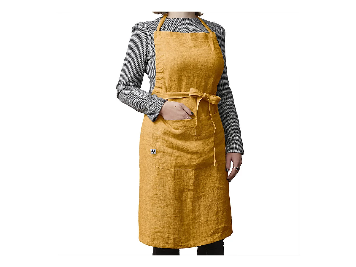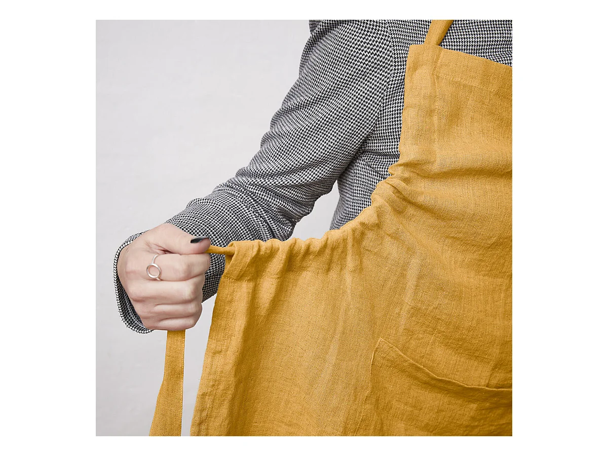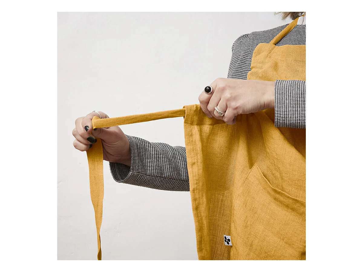 MARGAUX - Tablier Ajustable avec Poche 70x85cm Lin Lavé Coloris Miel