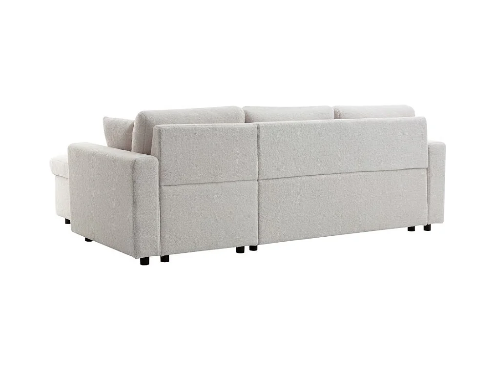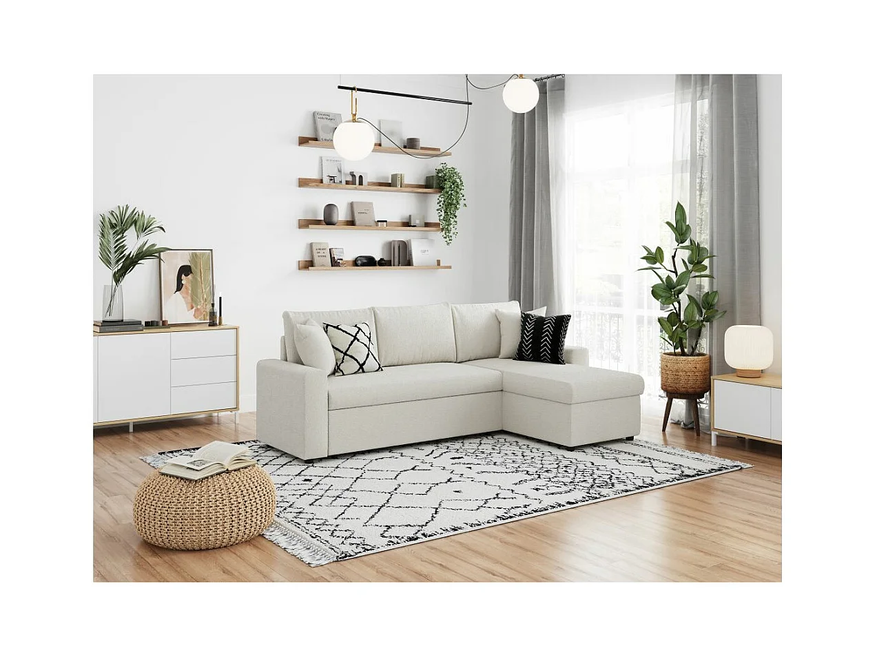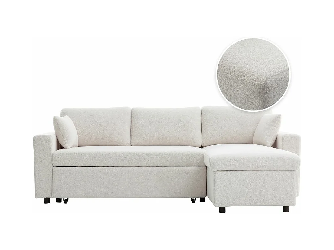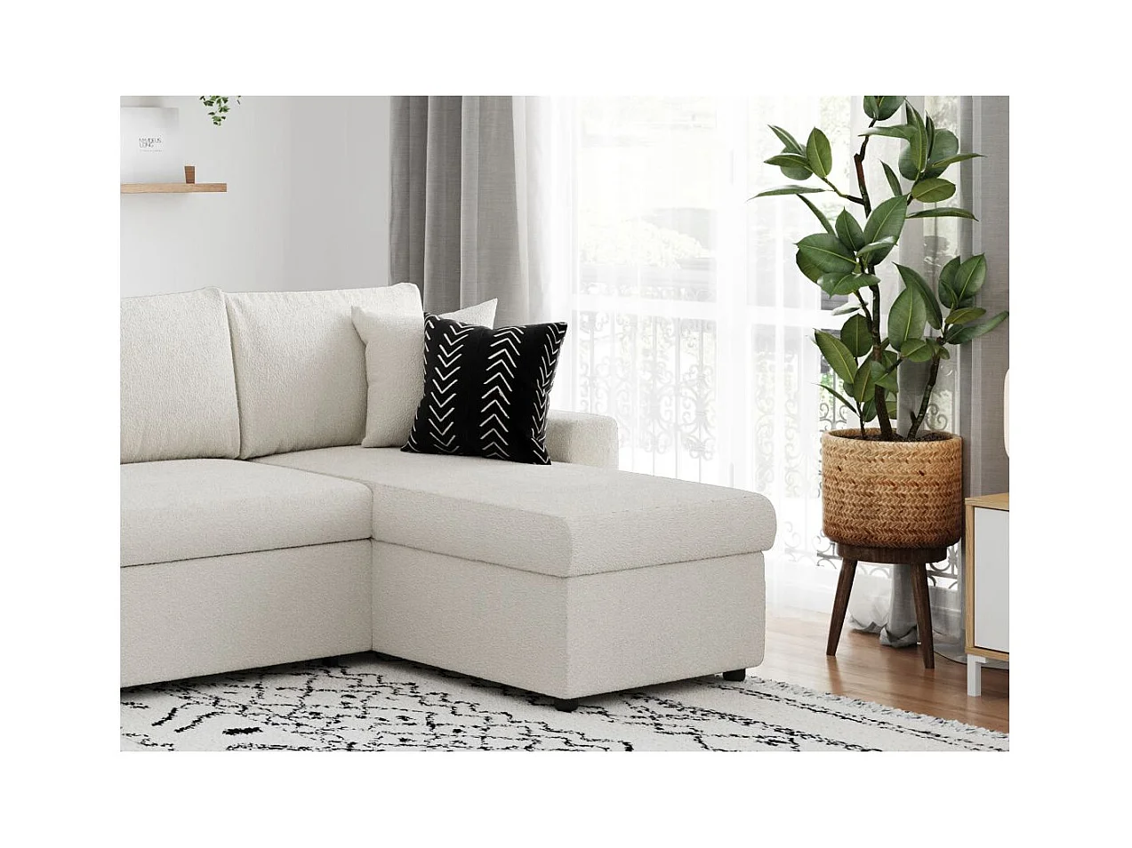 Canapé d'angle 3 places Maria réversible, convertible en tissu bouclette - Blanc - L227 x P146 x H81cm - Loungitude