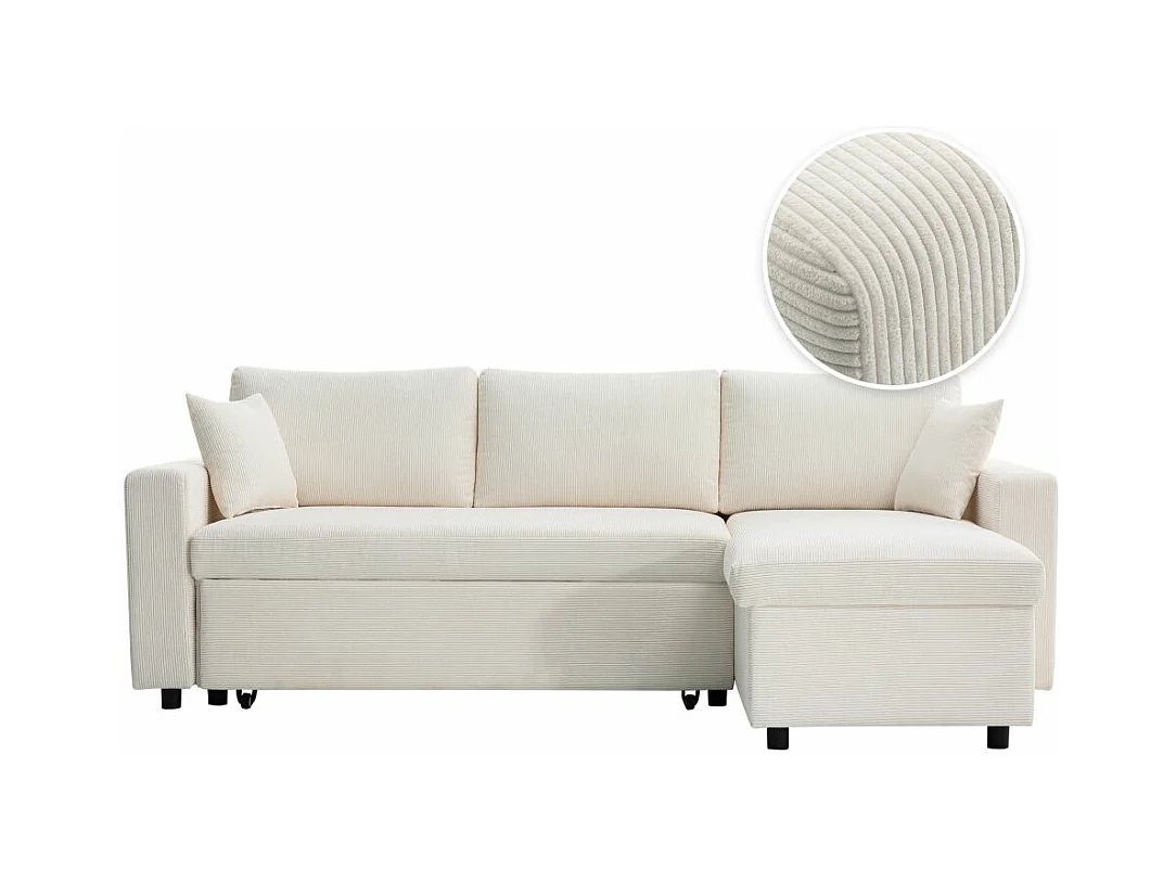 Canapé d'angle 3 places convertible et réversible Maria en velours côtelé fin avec coffre - Blanc - L227 x P146 x H81cm - Loungitude