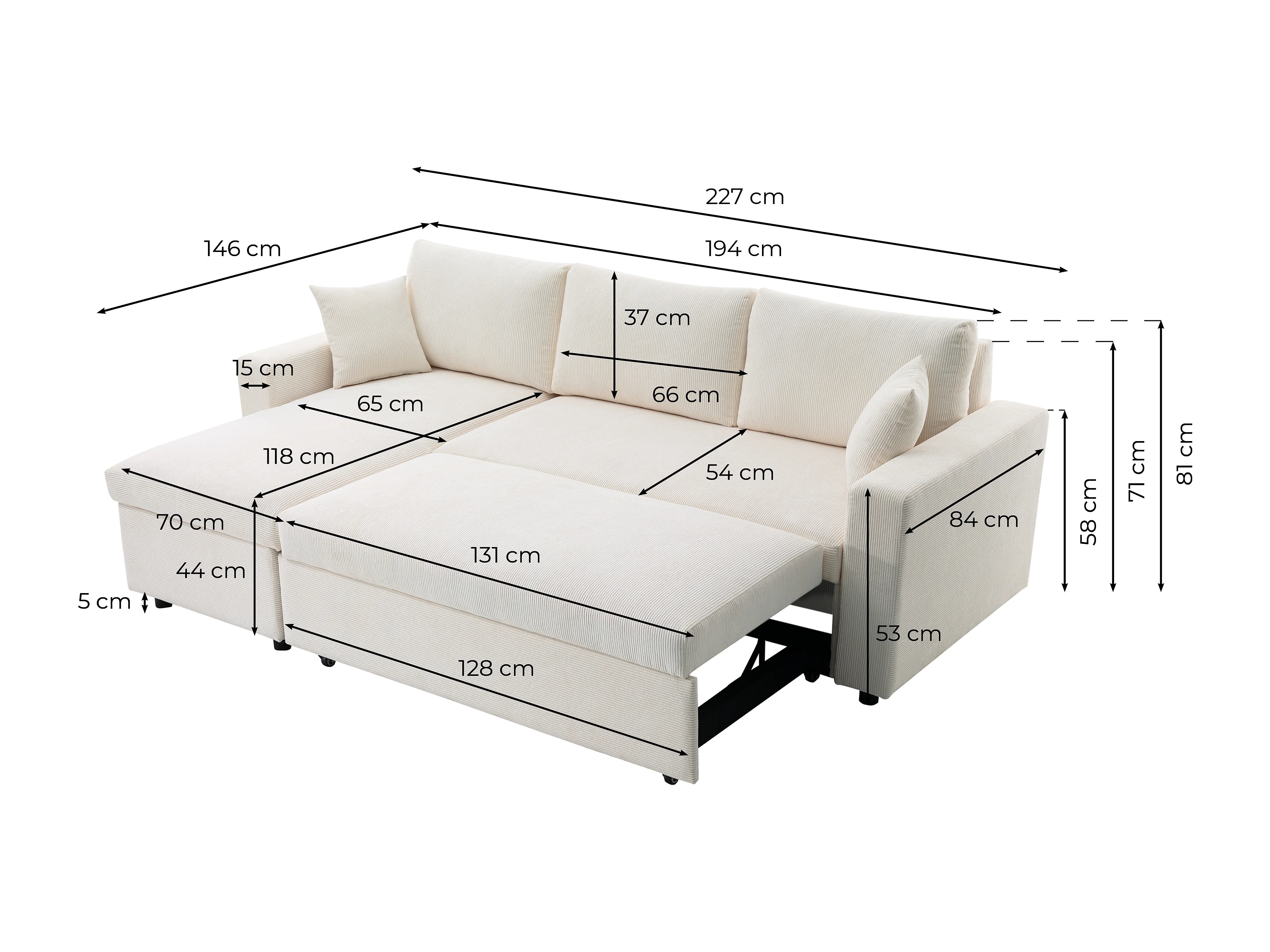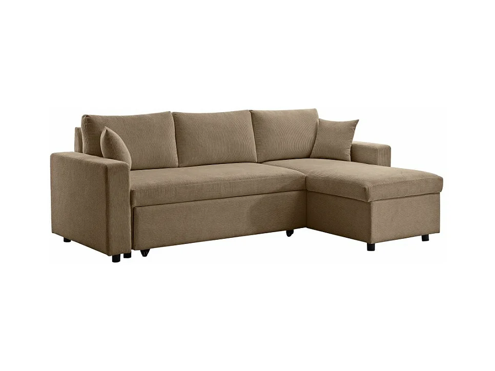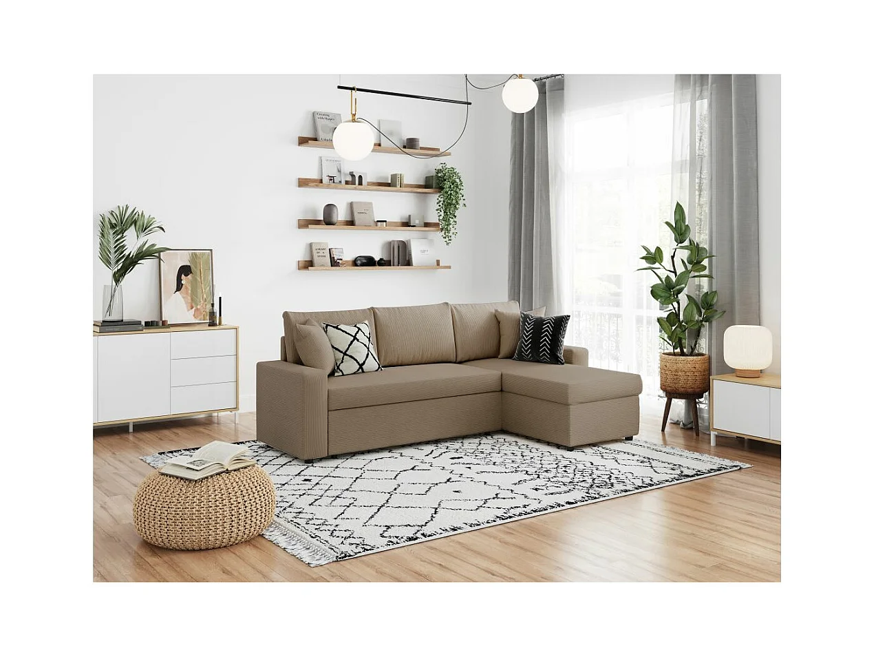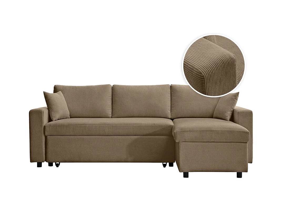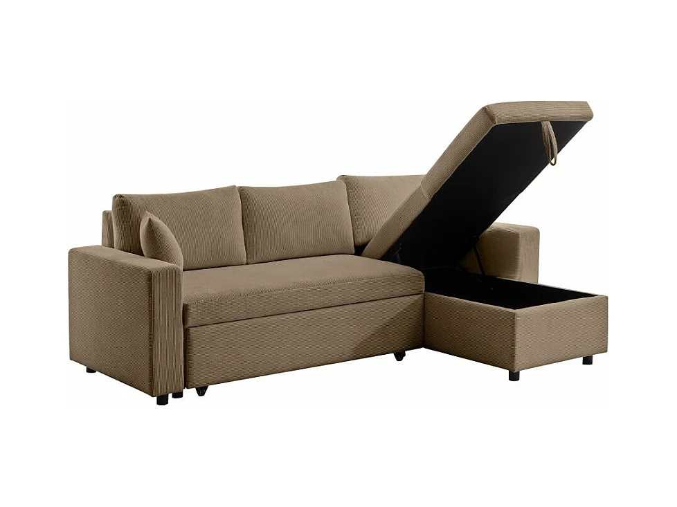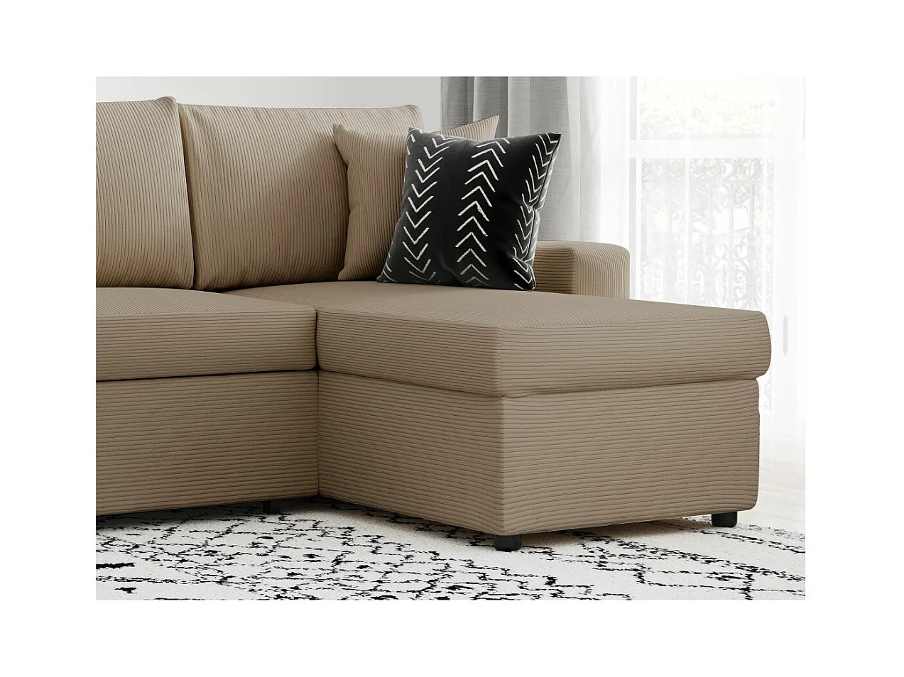 Canapé d'angle 3 places convertible réversible Maria en velours côtelé fin avec coffre - Taupe - L227 x P146 x H81cm - Loungitude