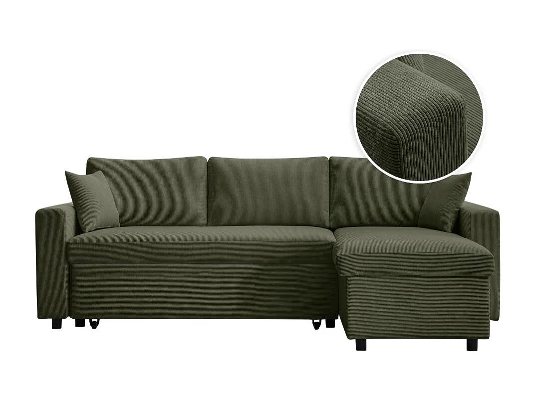 Canapé d'angle 3 places convertible réversible Maria en velours côtelé avec coffre - Vert foncé - L227 x P146 x H81cm - Loungitude