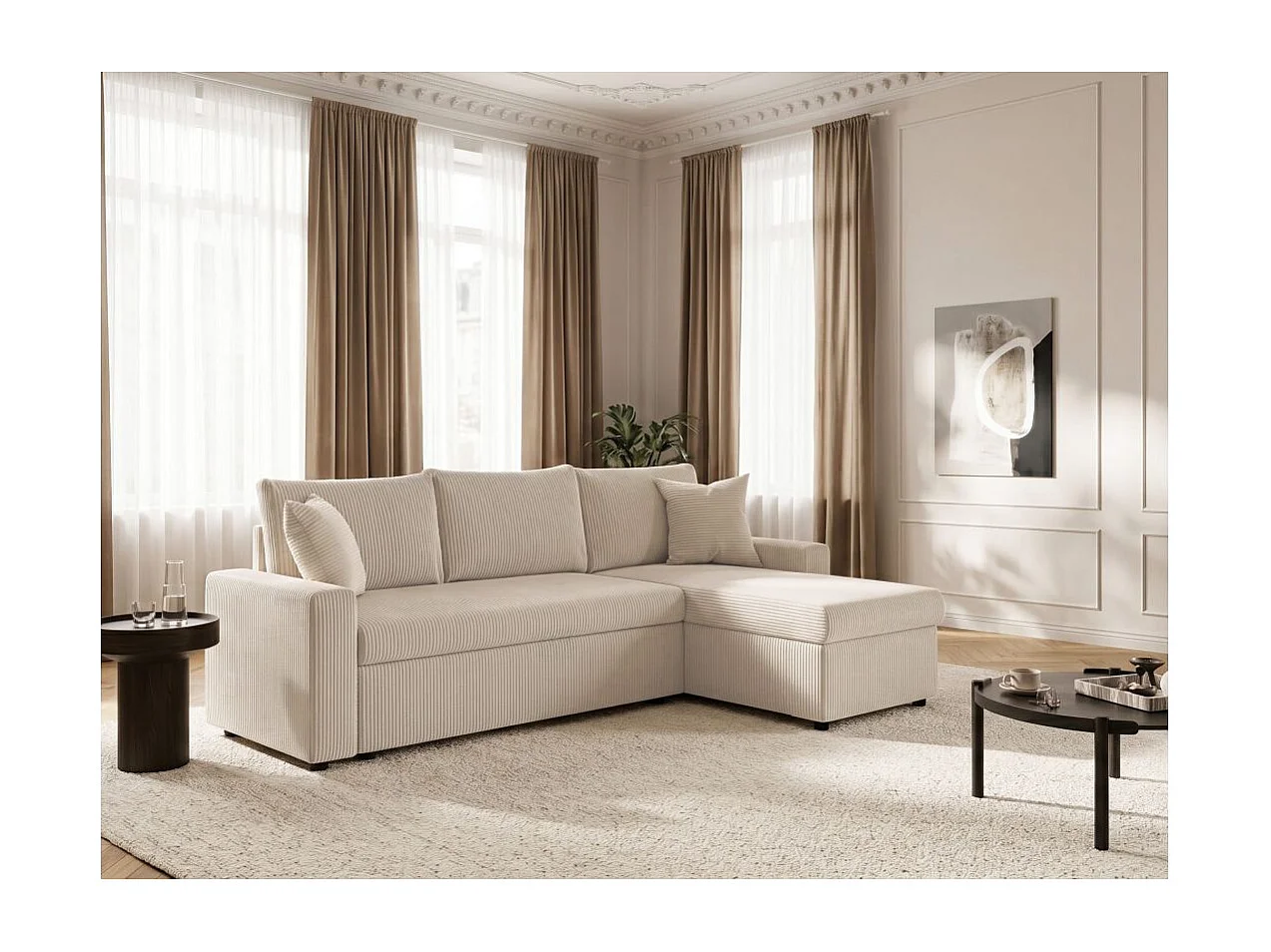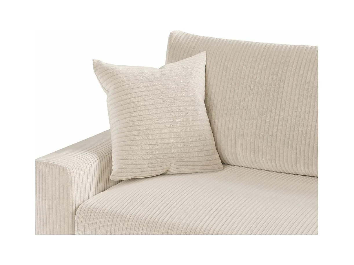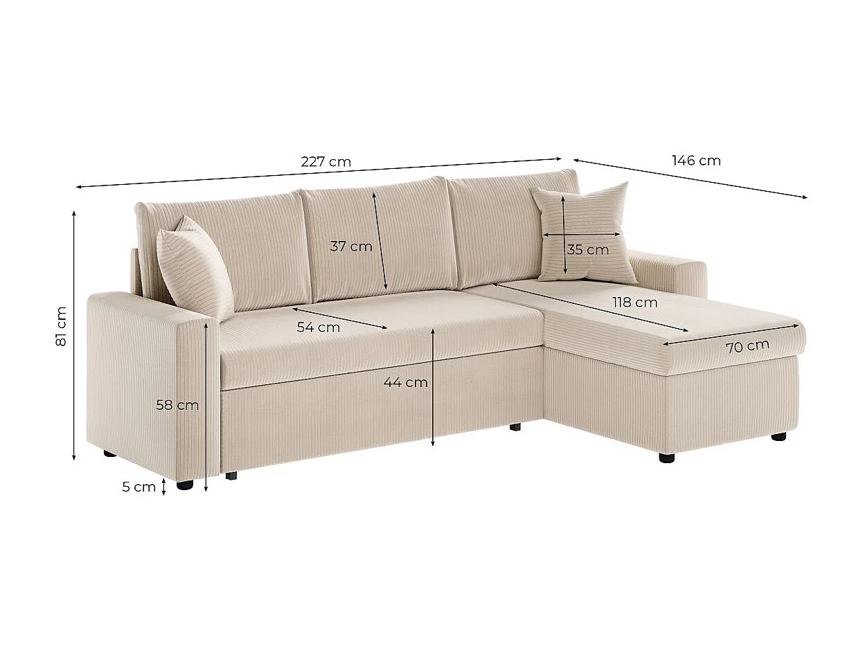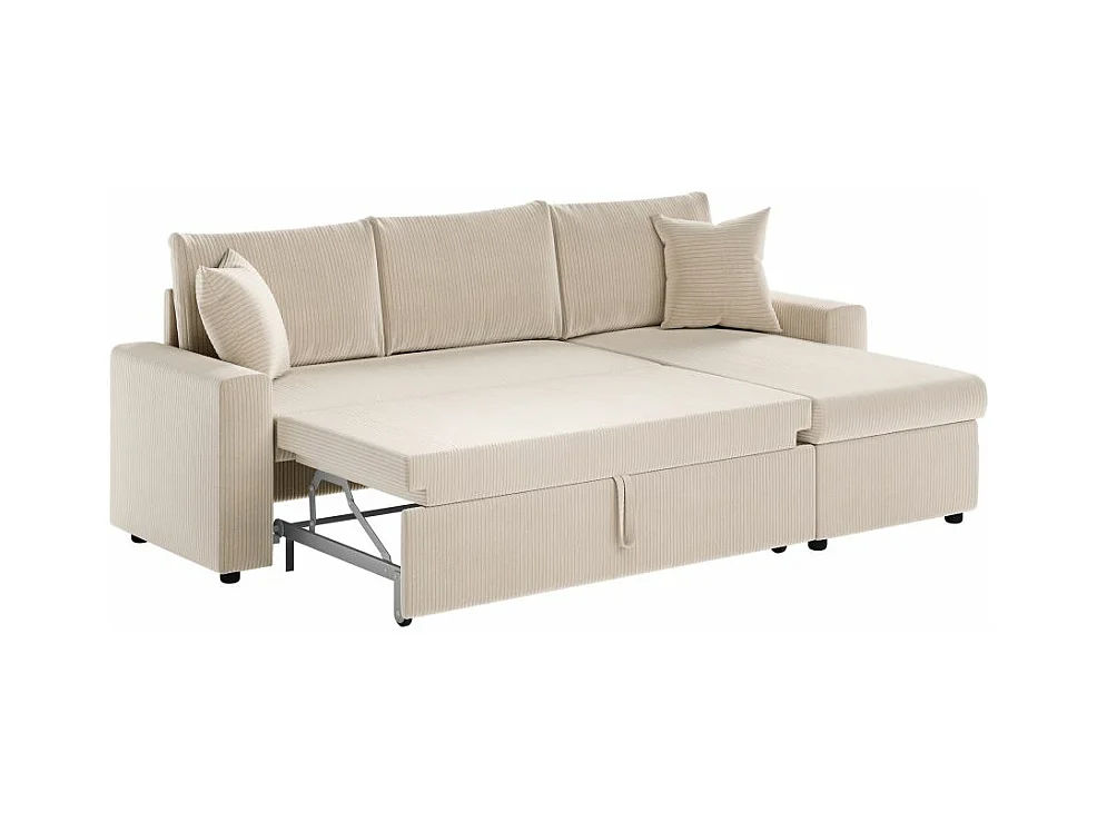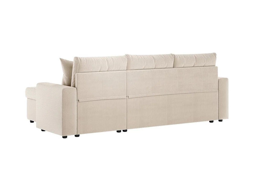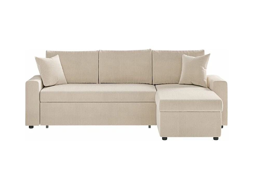 Canapé d'angle 3 places Maria réversible, convertible avec coffre en velours côtelé - Écru - L227 x P146 x H81cm - Loungitude