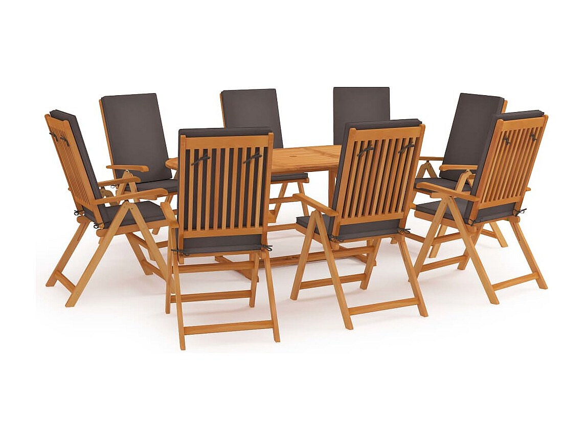 Mariaheide Ensemble à manger de jardin 9pcs coussins Bois teck massif Gris