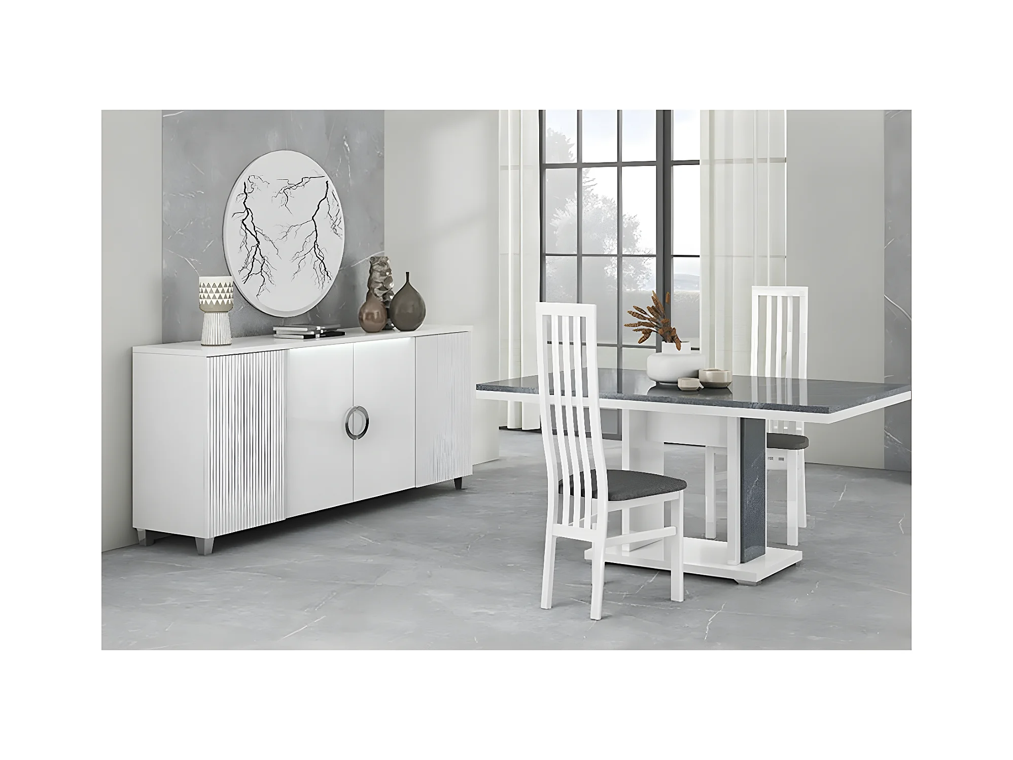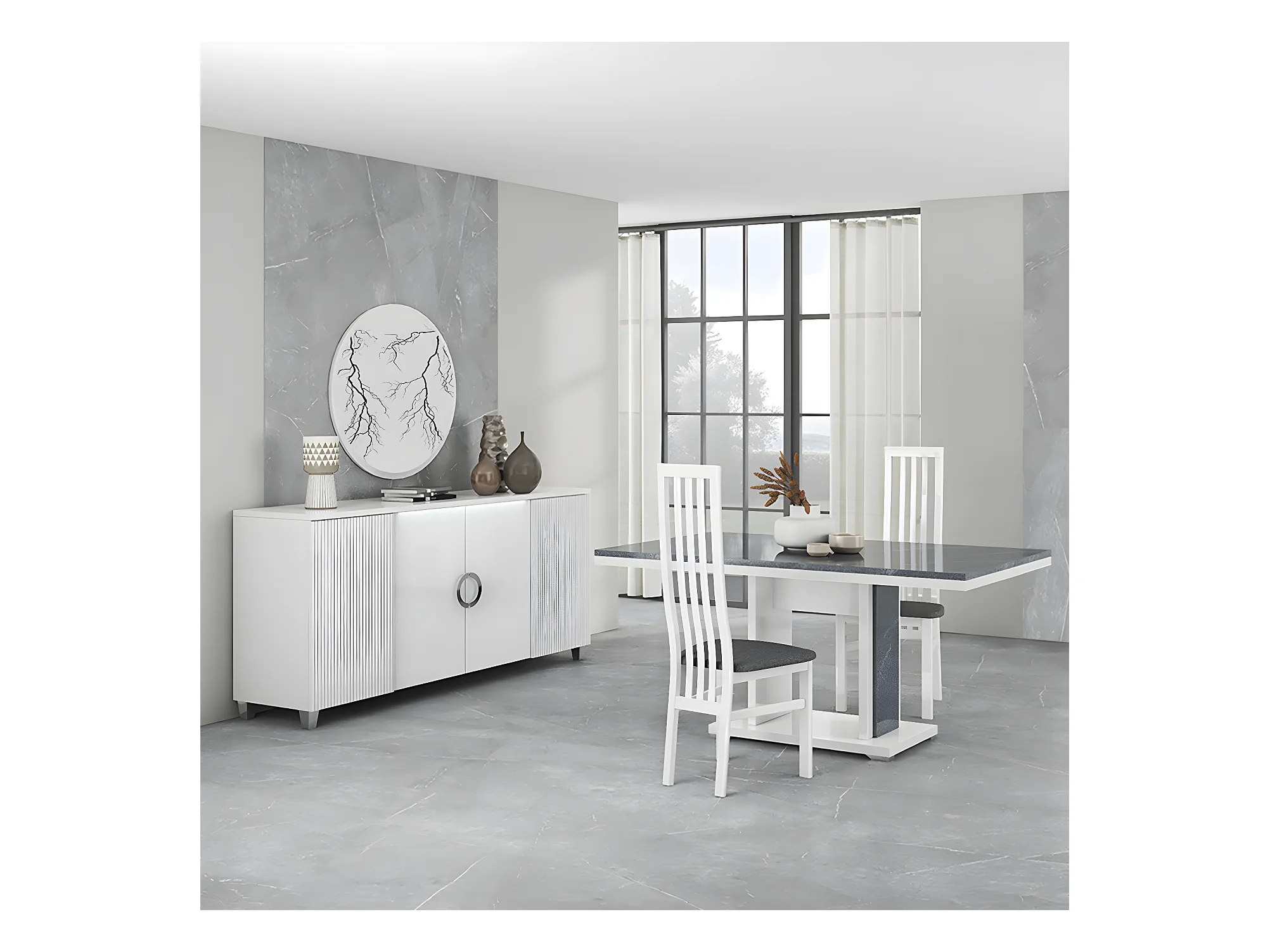 MARIKA - Buffet 4P avec Leds + Table 160cm Effet Pierre