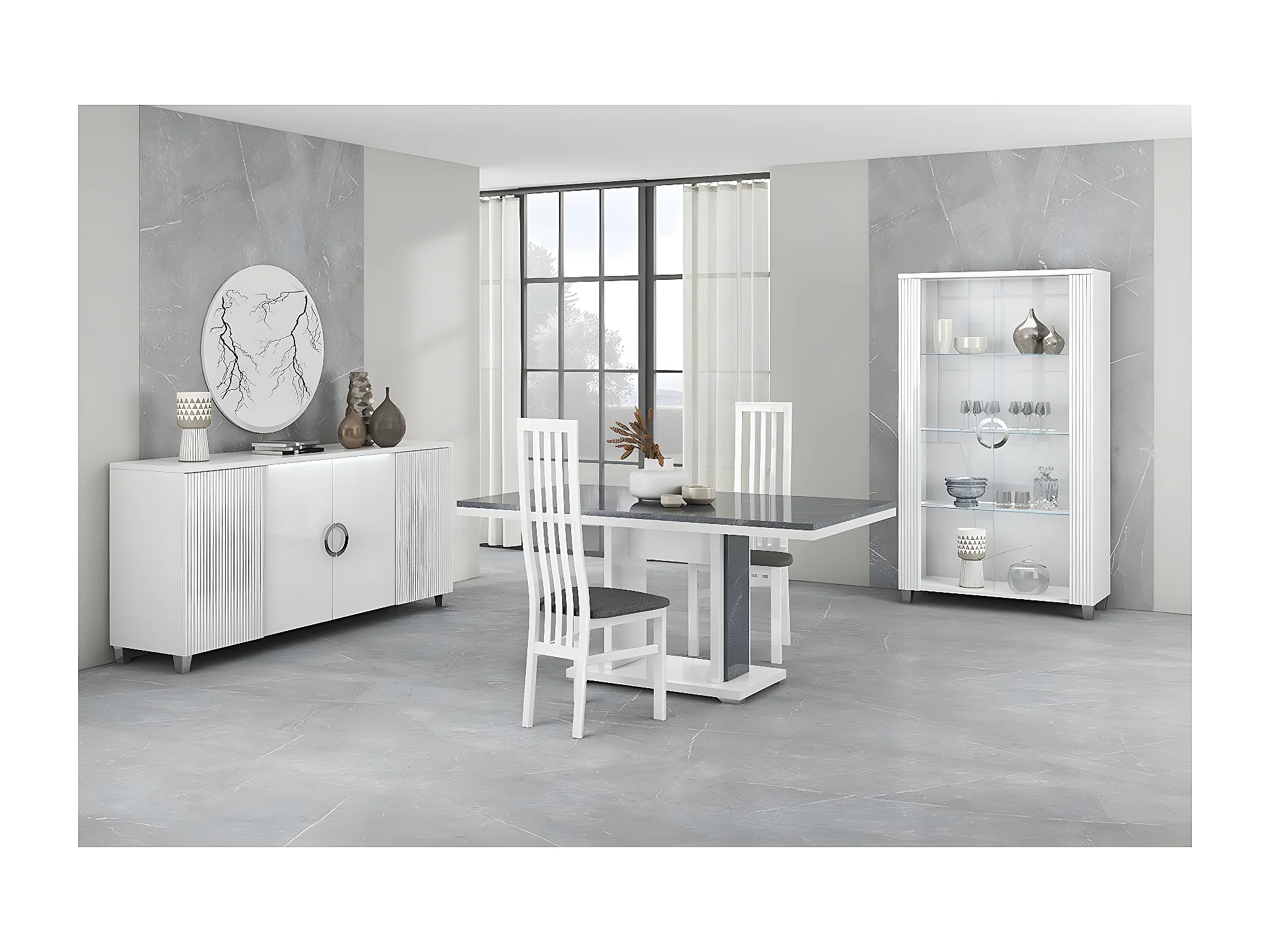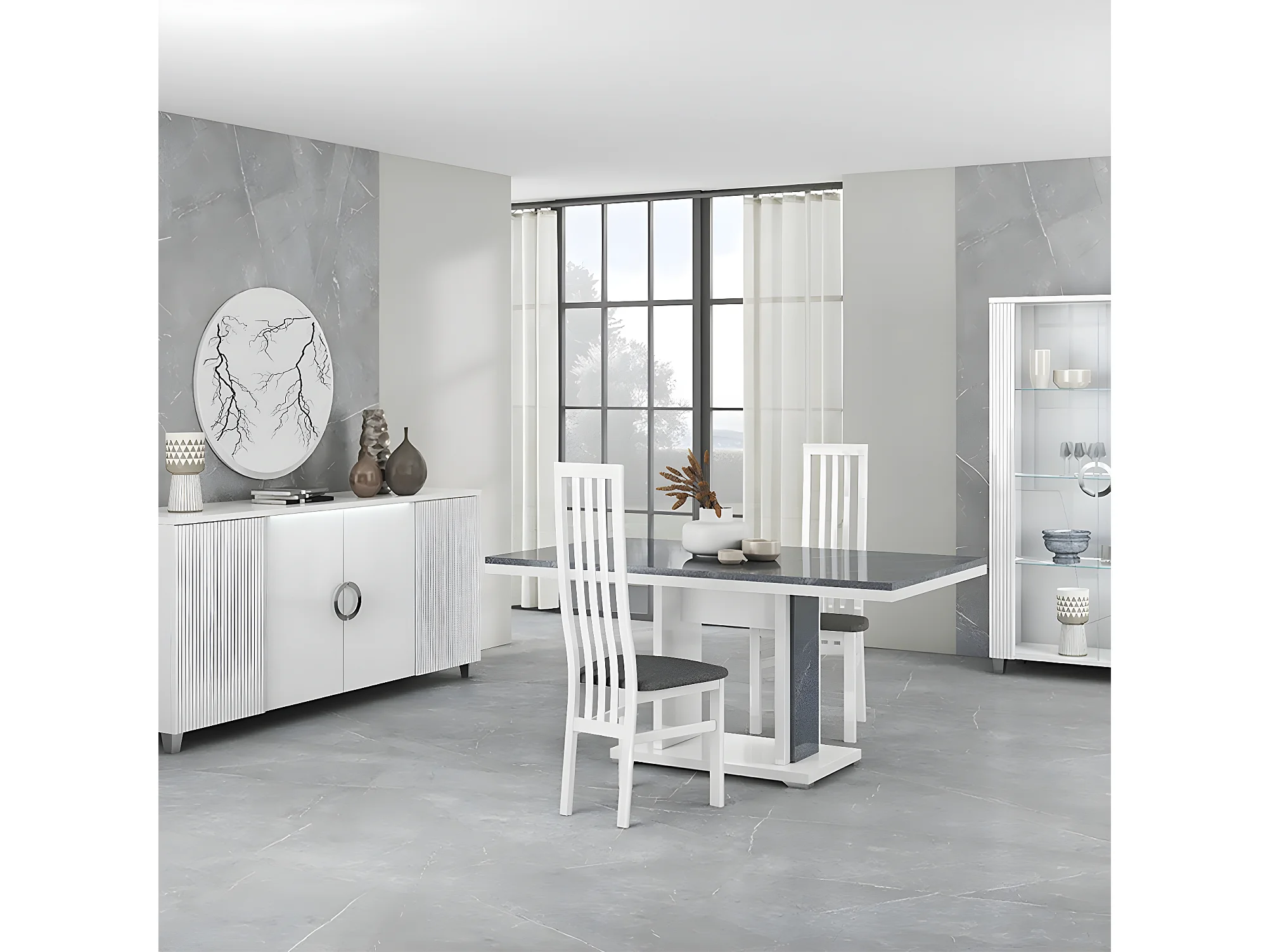 MARIKA - Séjour Complet avec Table 160cm Effet Pierre + Leds