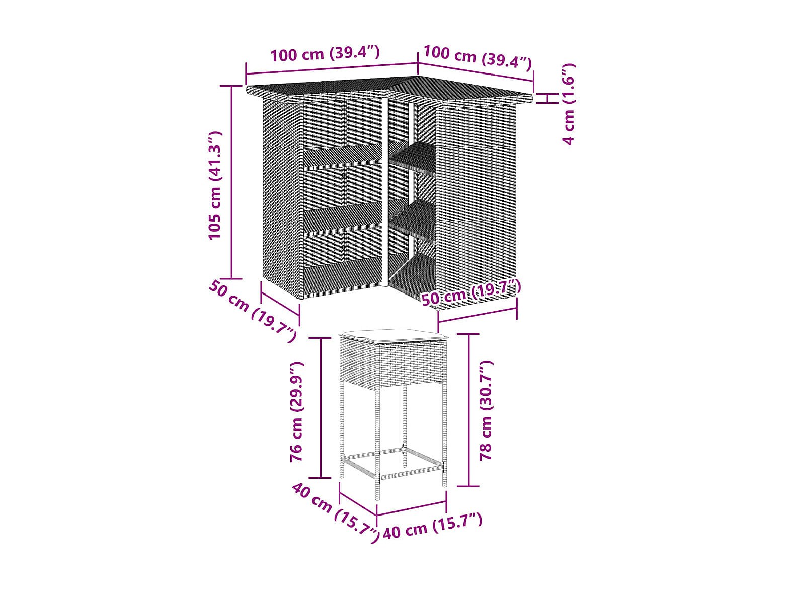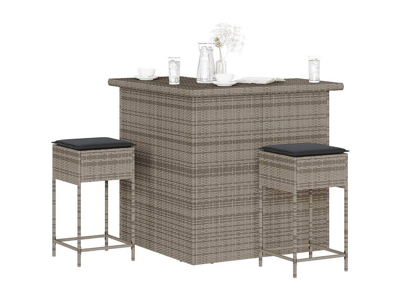 Marilou Ensemble de bar de jardin 3 pcs et coussins gris résine tressée