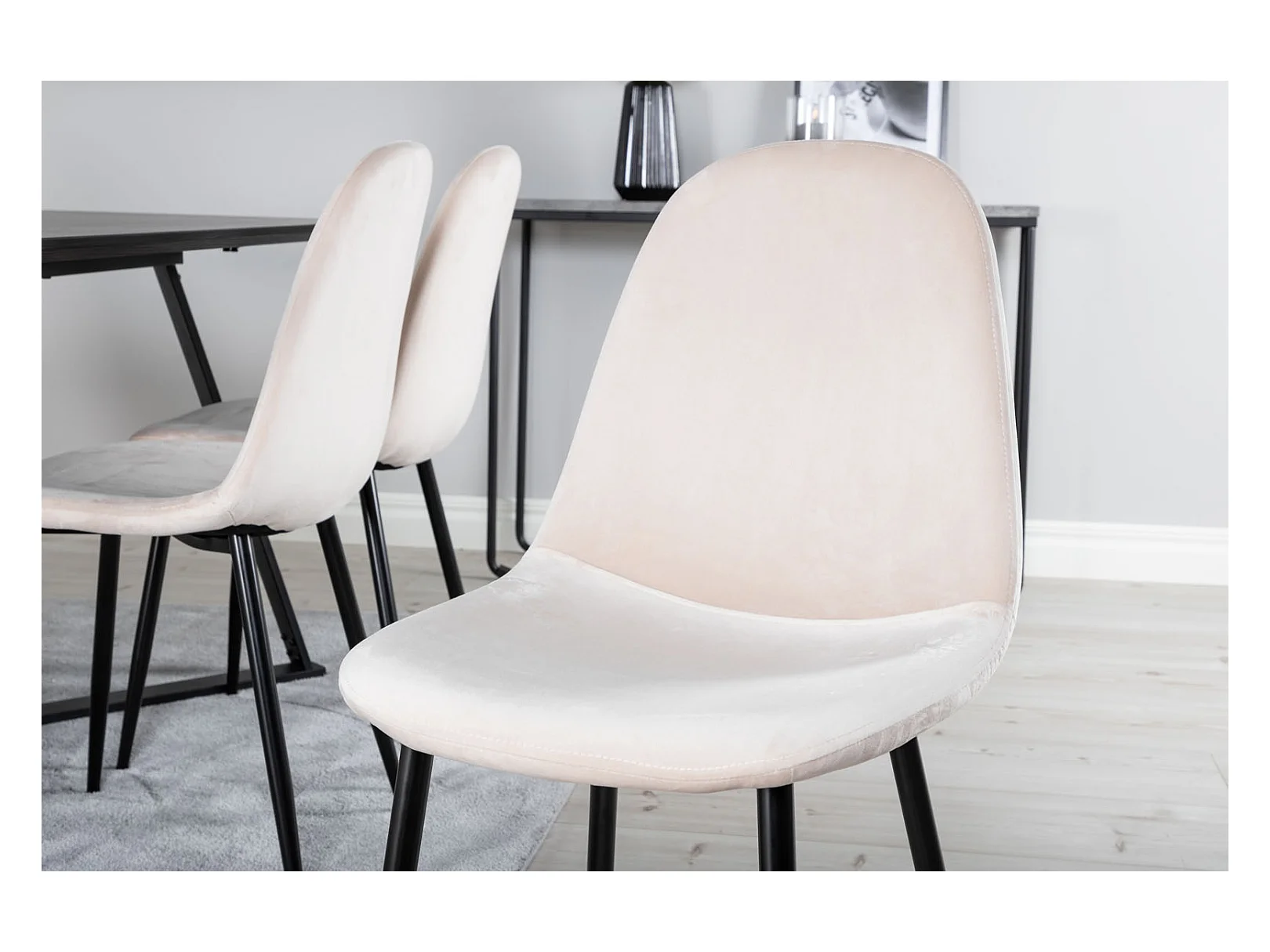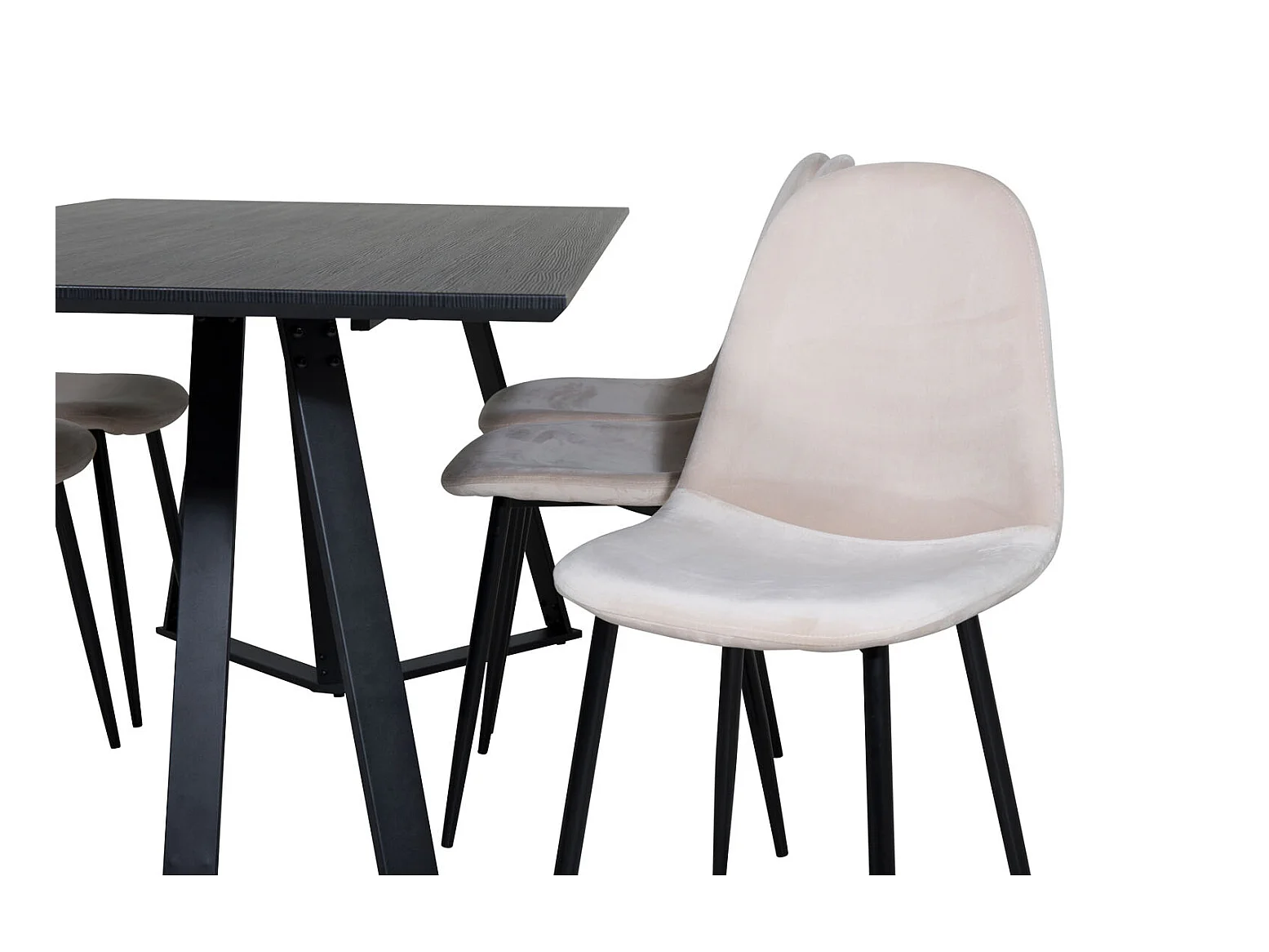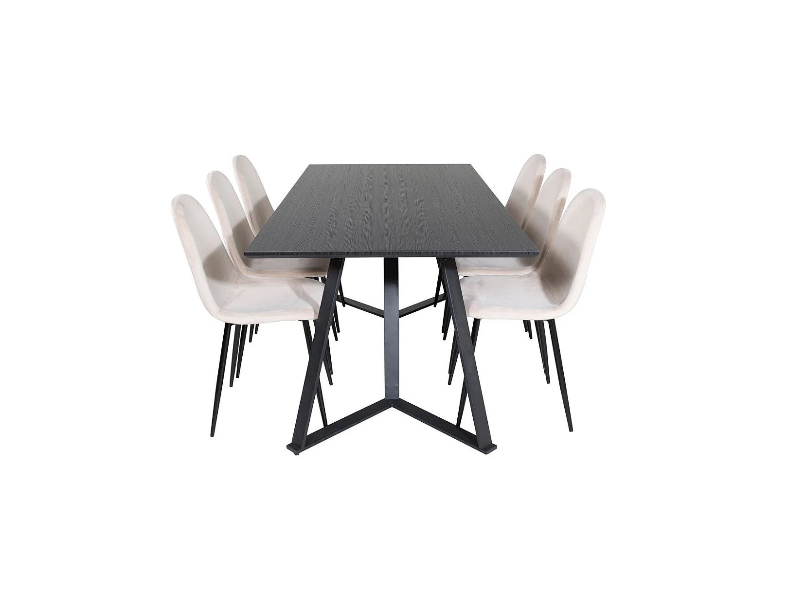 MarinaBLBL ensemble table, table noir et 6 Polar chaises Velours beige.