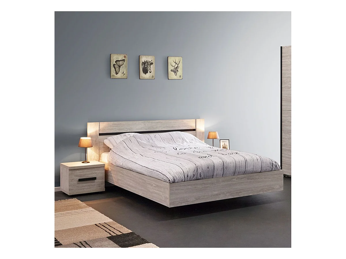 MARJORIE - Lit 140x200cm Structure Effet Bois Grisé Style Comtemporain