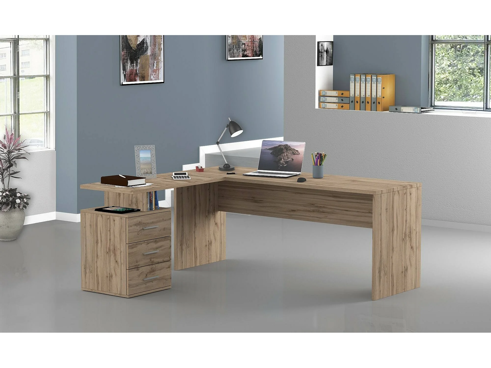 Mark Desk, Bureau PC d'angle, Table de bureau polyvalente, Bureau multi-positions peu encombrant, 100% Made in Italy, 160x60h75 cm, Chêne