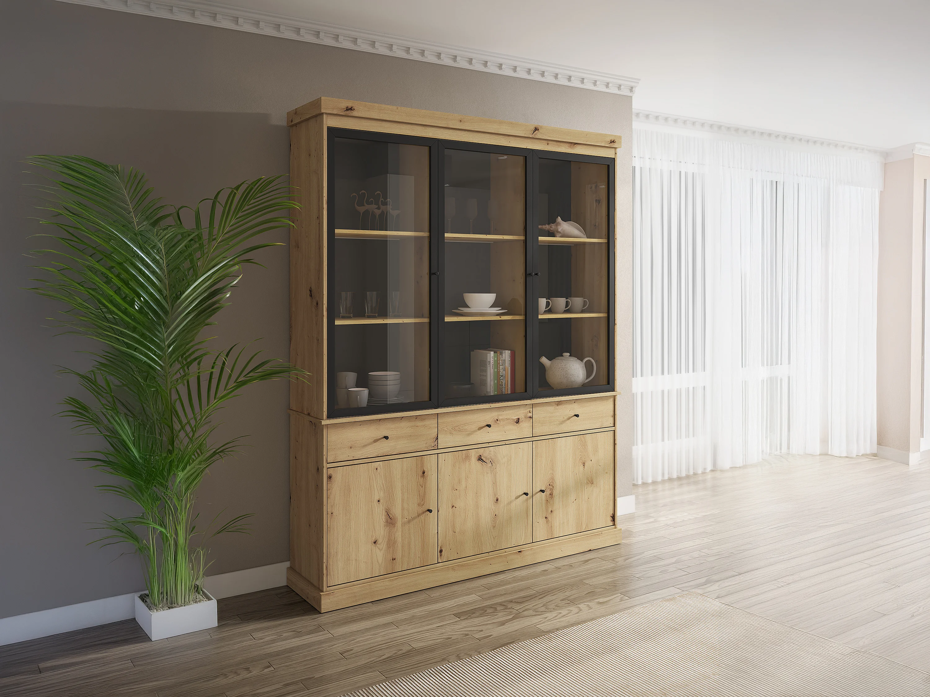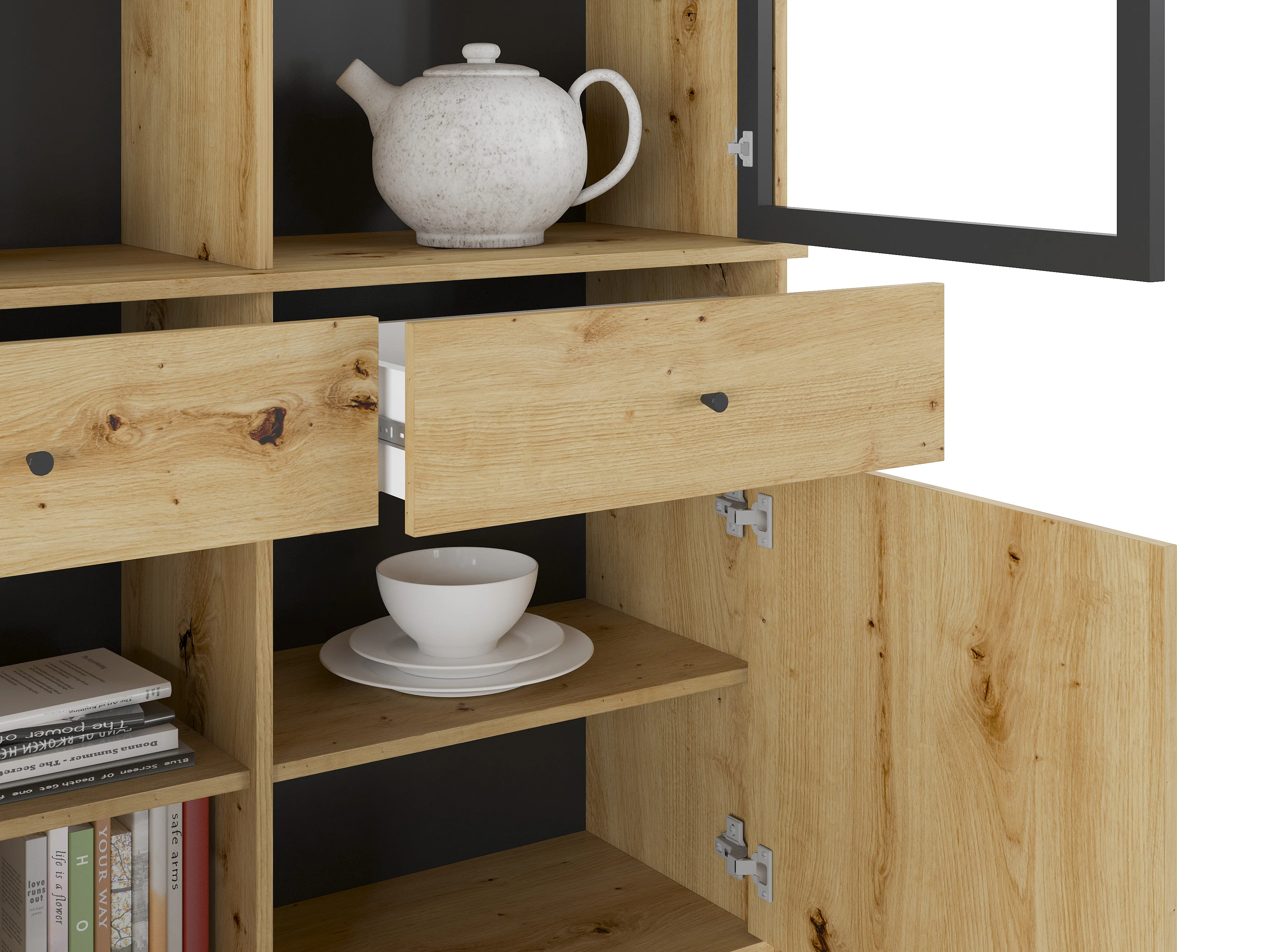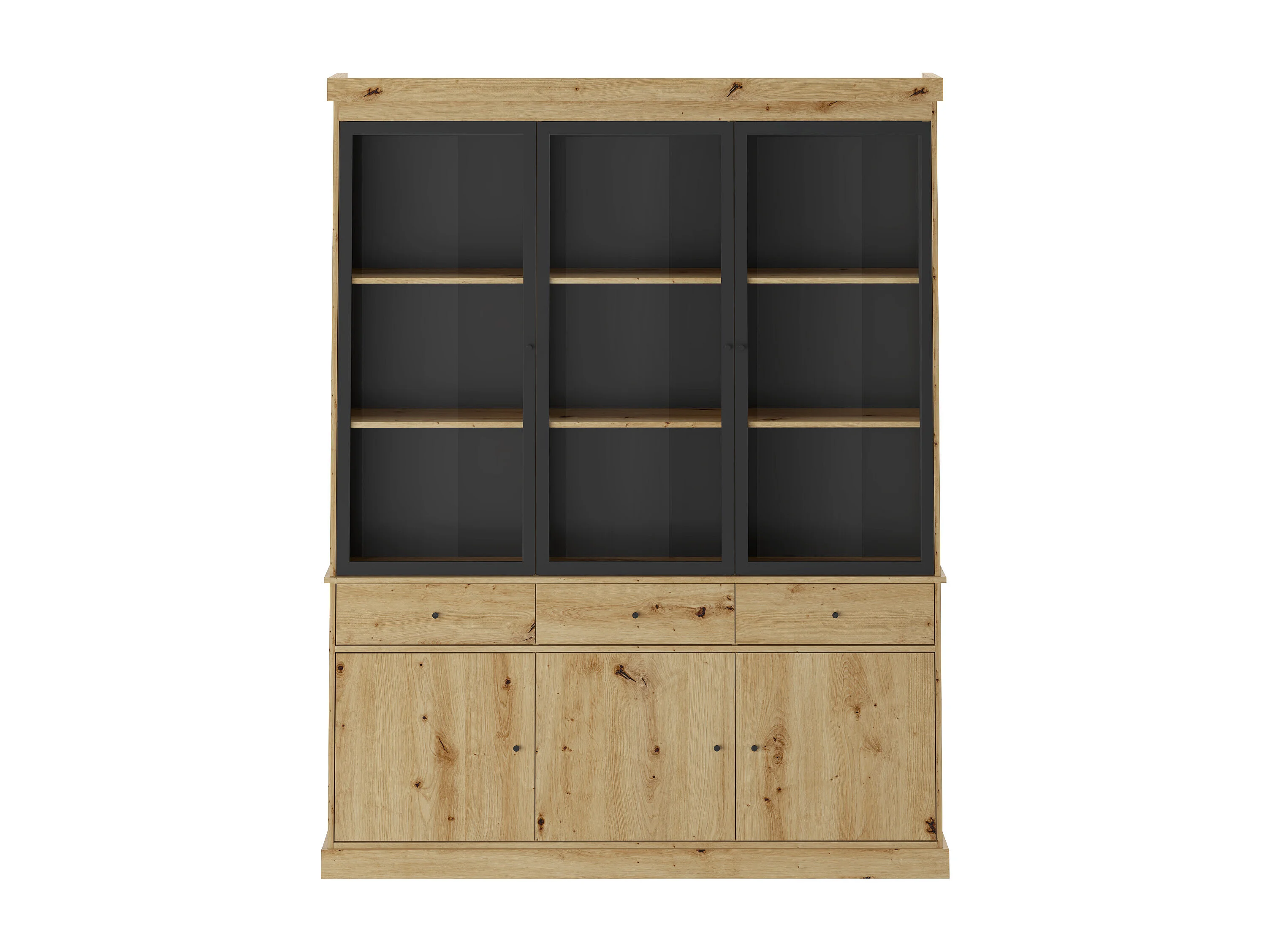 Vitrine avec rangements et LEDs - Naturel et noir - MARSORIA