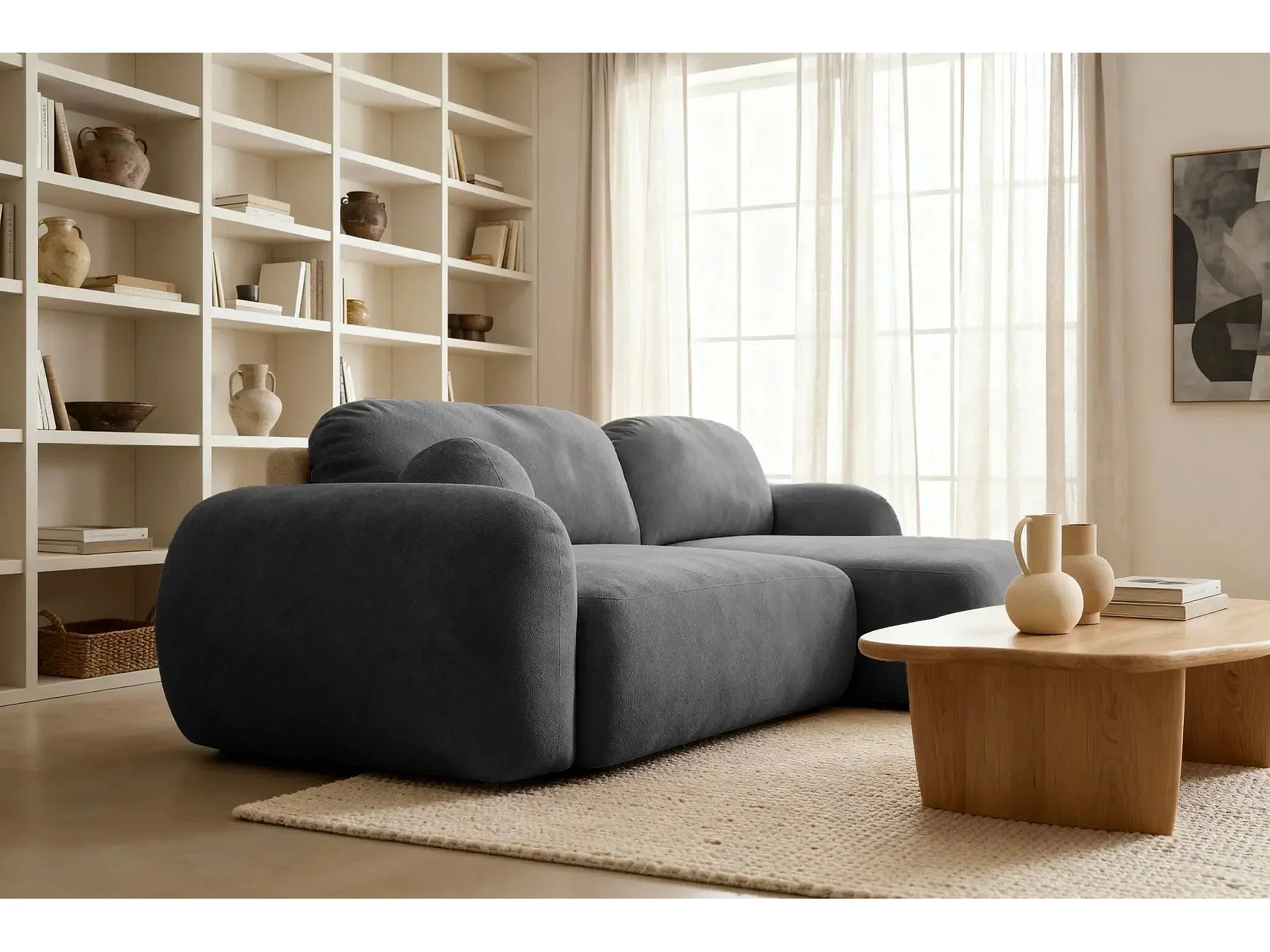 MARTIN - Canapé d'angle - Gris Foncé - Droit